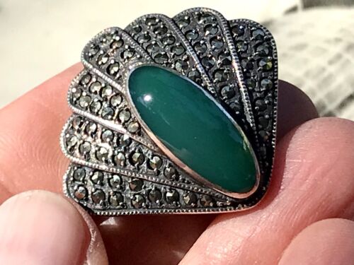 Antik Art Déco Edel Ohrclipse Ohrringe 925 Silber Fächer Achat? & Markasite