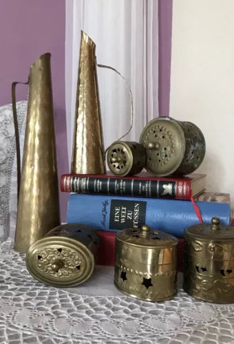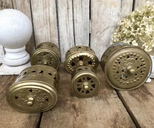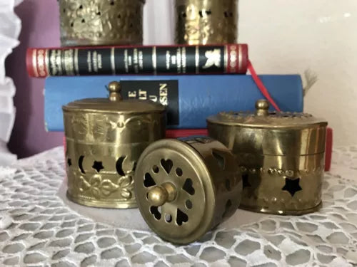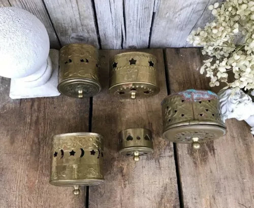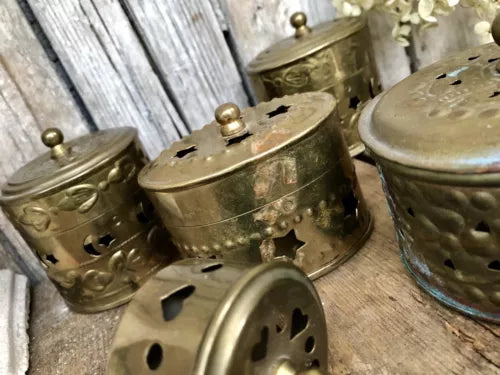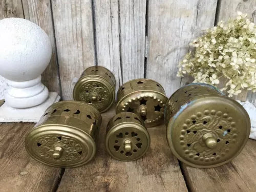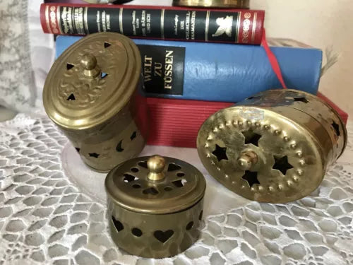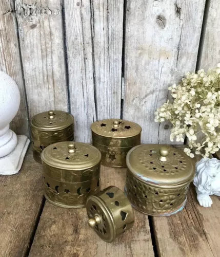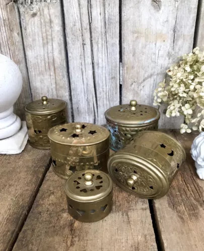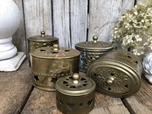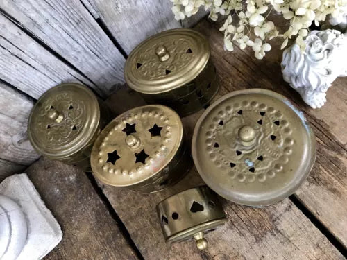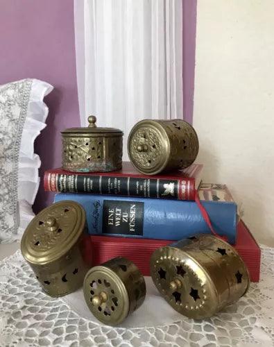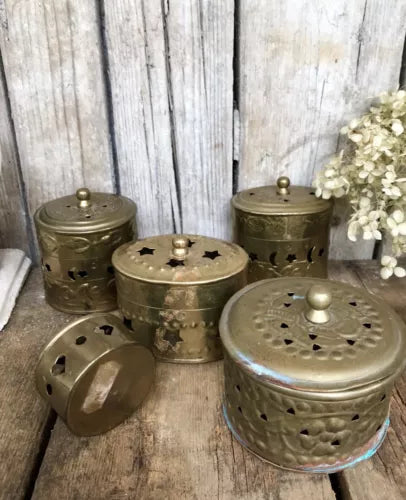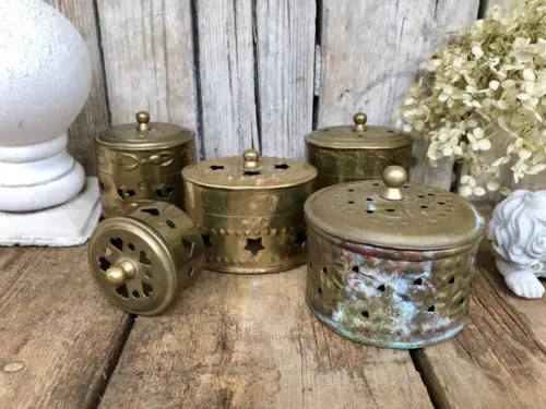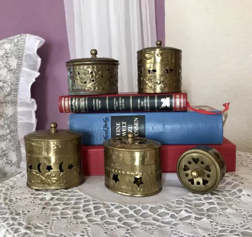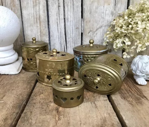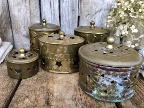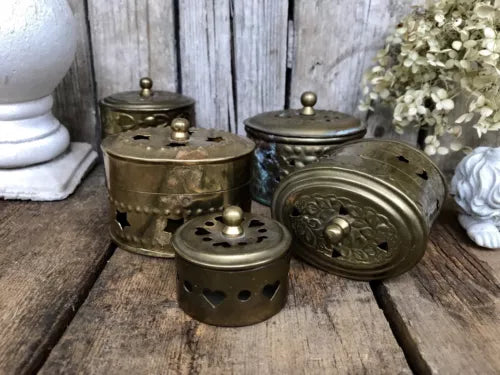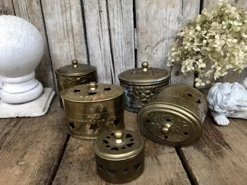 5 alte Potpourri Döschen Deckeldosen Dosen Messingblech Shabby Vintage