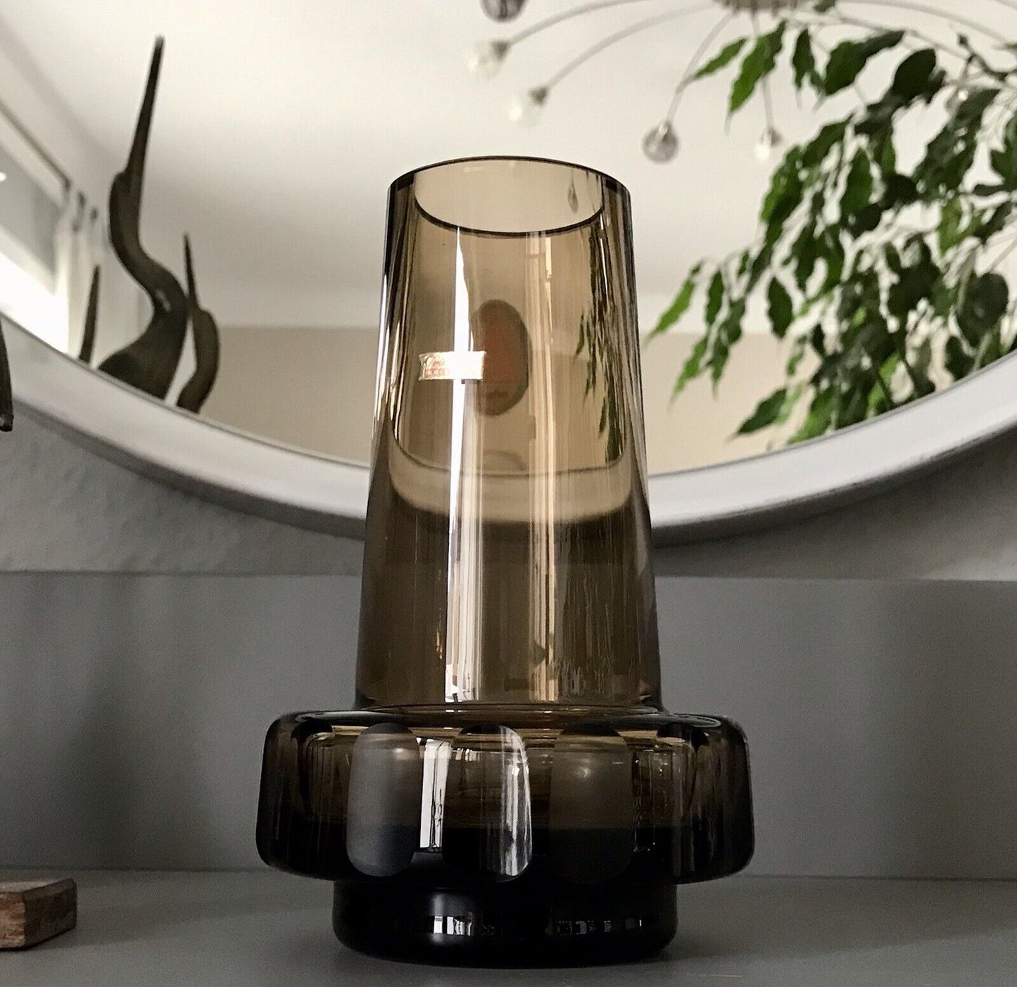60er Vintage Vase Glasvase Friedrich Glas Kristallglas Rauchglas Braun Schliff