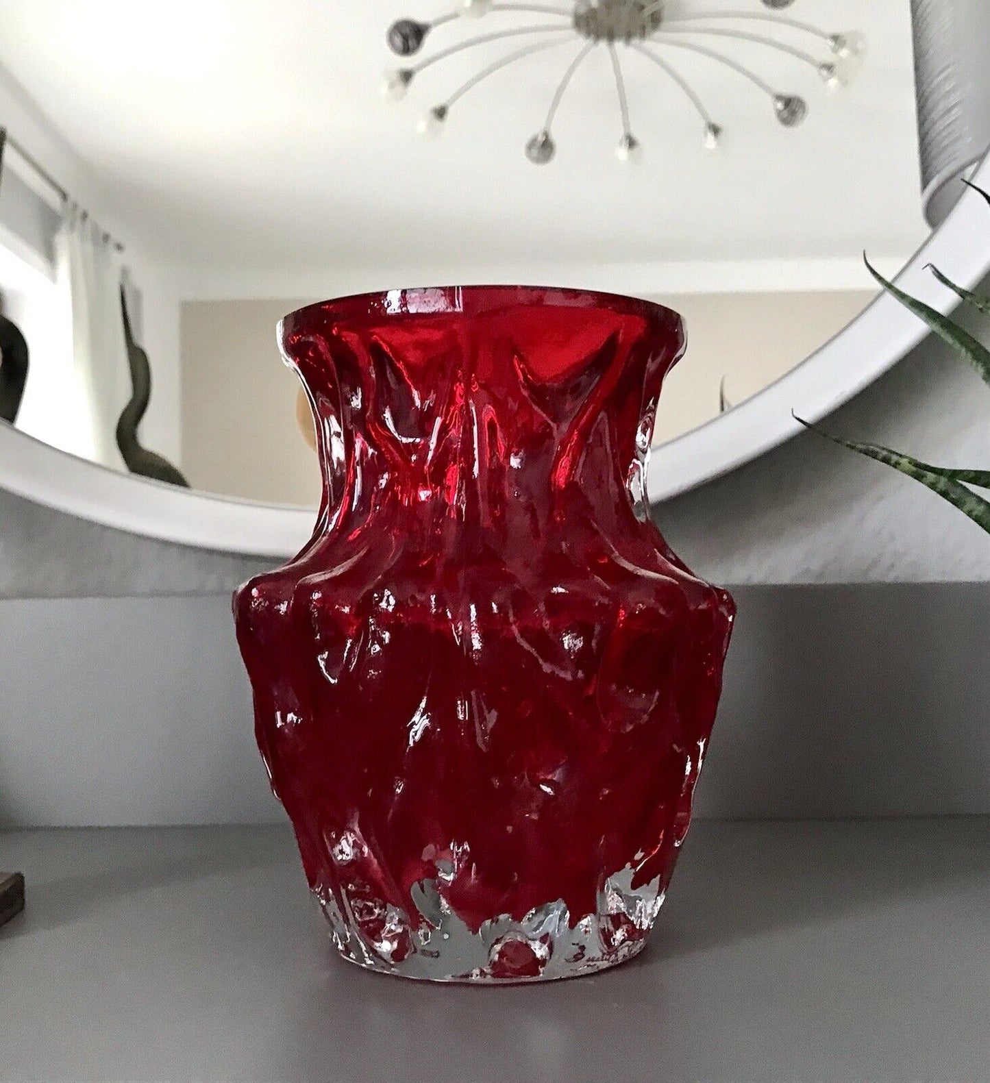 70er Jahre rot Glas Vase Blumenvase Glasvase Glas By Kurt Wokan Ingrid Hütte