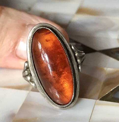 Alt Antik Art Déco Press Bernstein DAMEN RING Silber Super Gr.53 16,8 1,68