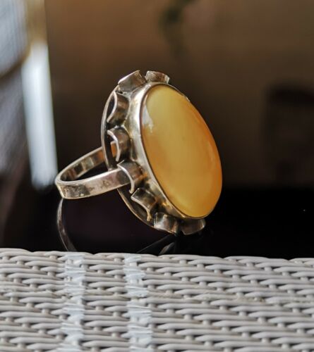 Alt Antik Edel Bernstein DAMEN RING Silber 800 Butterscotch Gr.53 /16,8 mm