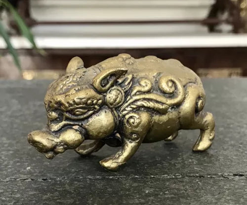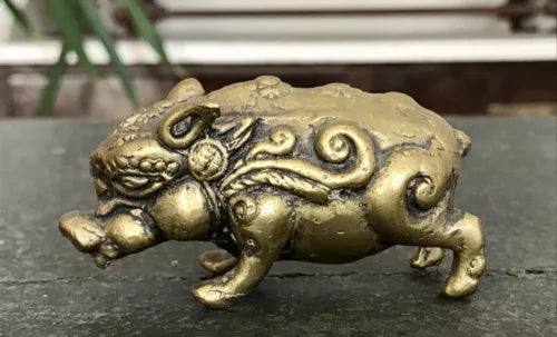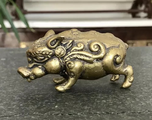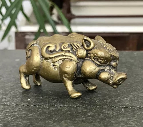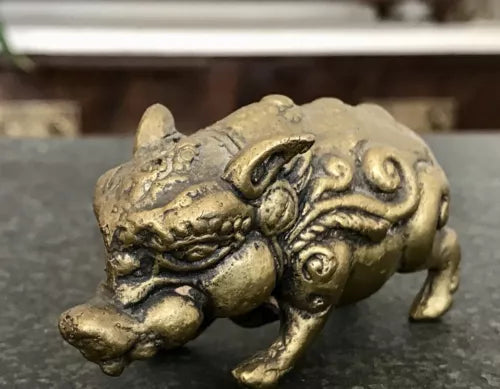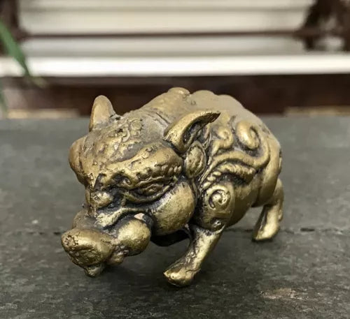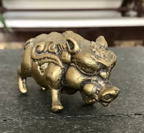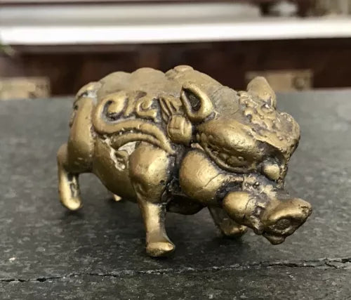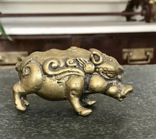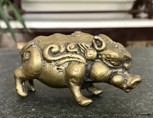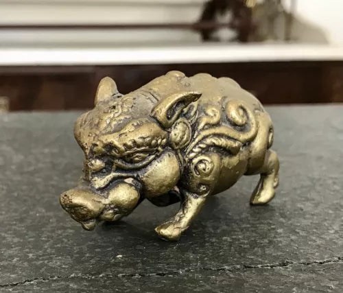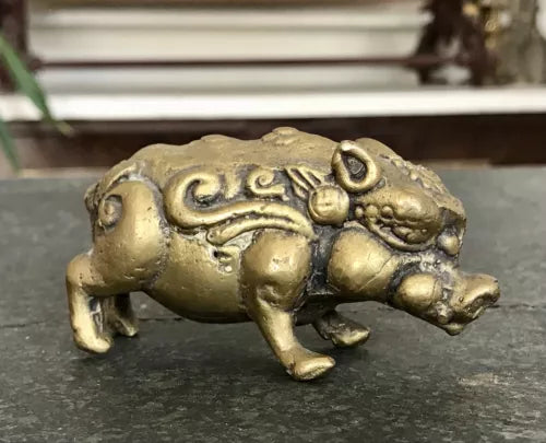 Alt antik? Messing Bronze? Skulptur Figur Schwein reich verziert Feng Shui