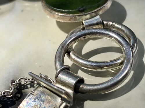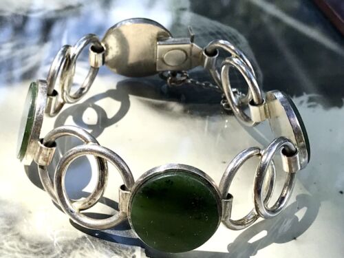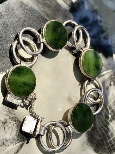 Kommodengriff präsentiert ein zauberhaftes altes Vintage wundervolles Designer-Silber-Armband mit grünem Jade oder grünem Onyx