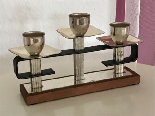 Alt Vintage 60er Leuchter 3flammig versilbert Kerzenständer Teakholz Teak Rar