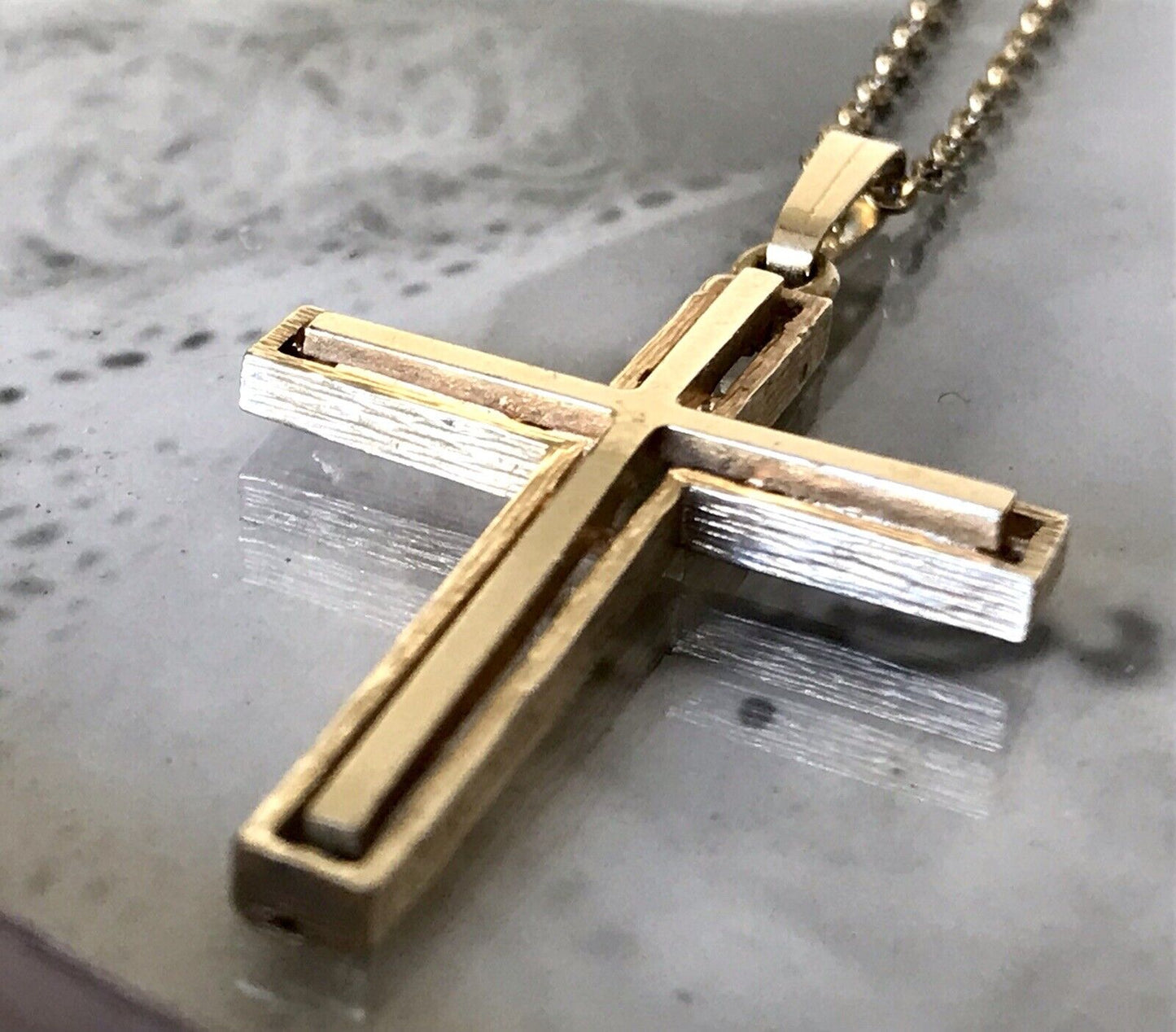 Alt Vintage Amerik. Doublè Halskette mit Kreuz Anhänger schön vergoldet schlicht