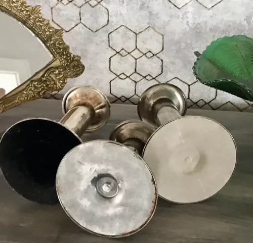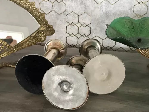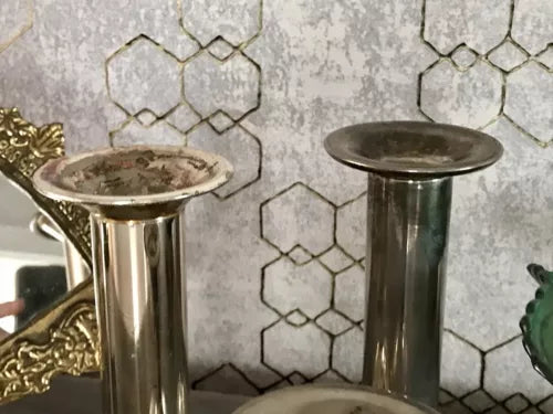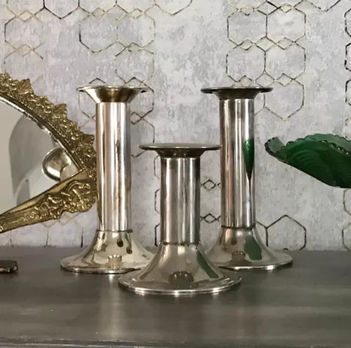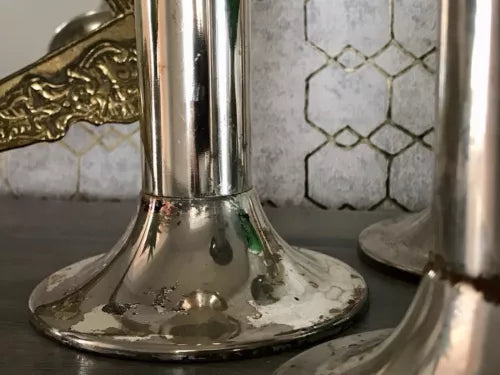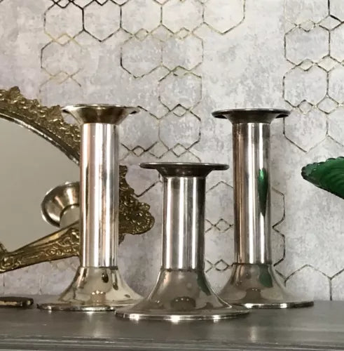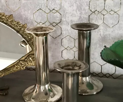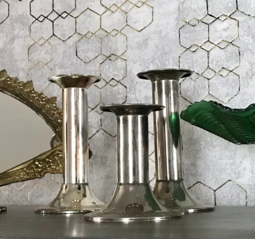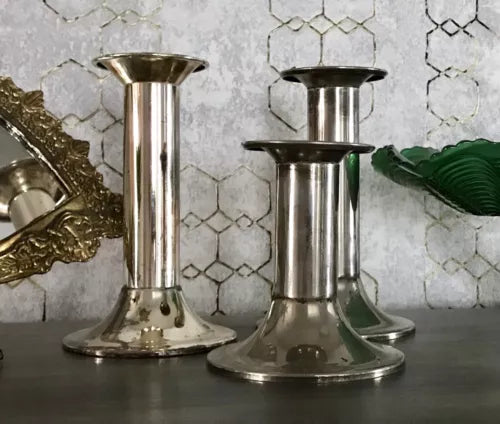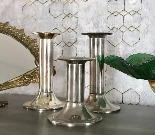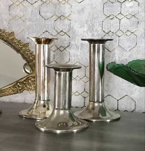 Alt Vintage Art Deco-Stil 3 Kerzenständer Leuchter versilbert