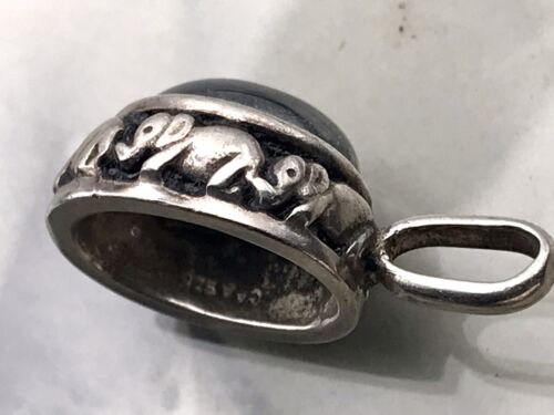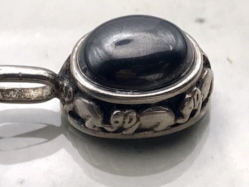 Alt Vintage DAMEN 925 Silber Anhänger Hämatit Stein mit Elefanten-Relief