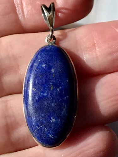 Alt Vintage DAMEN Silber WUNDERVOLL Anhänger Blauer Stein Lapislazuli