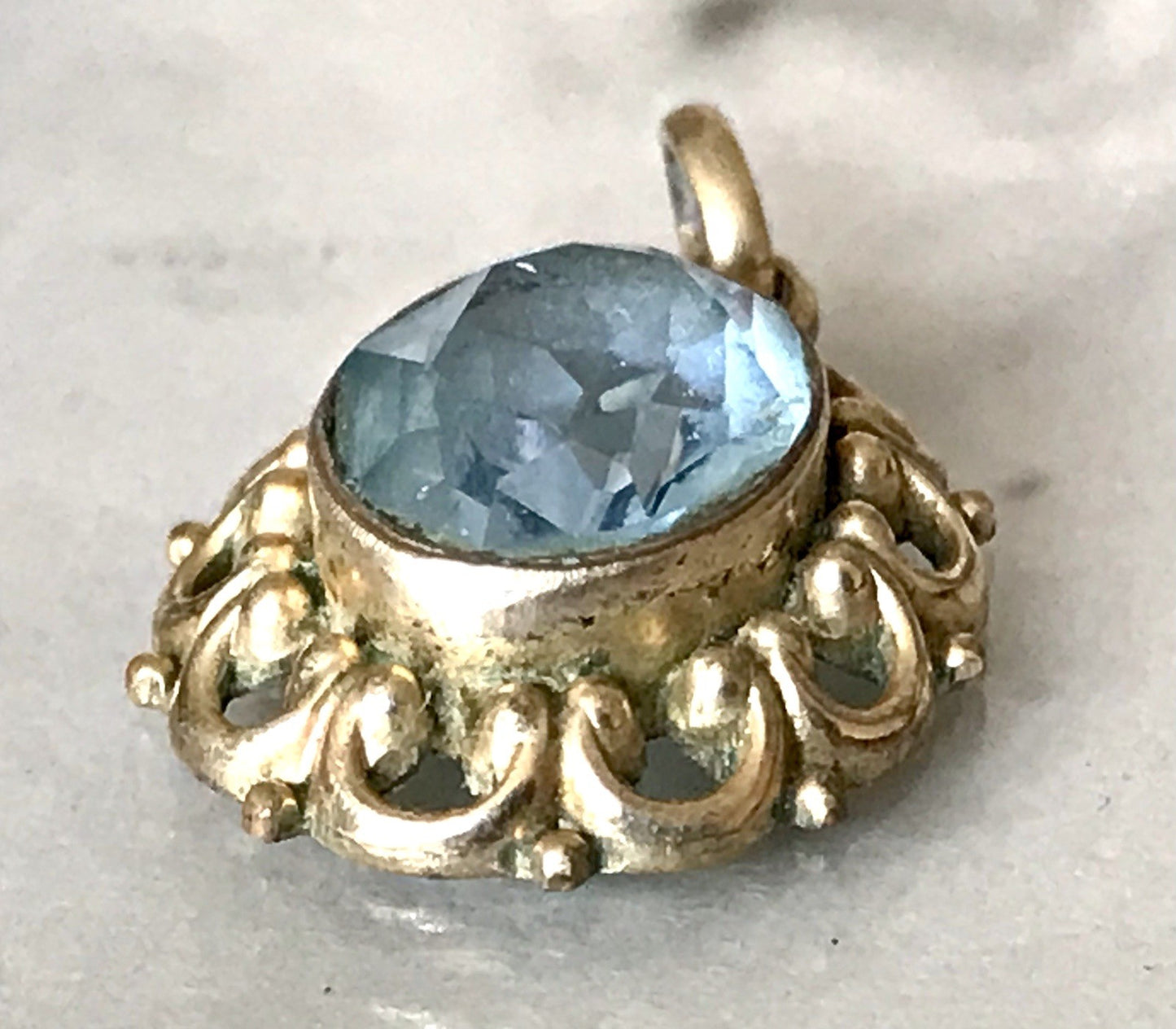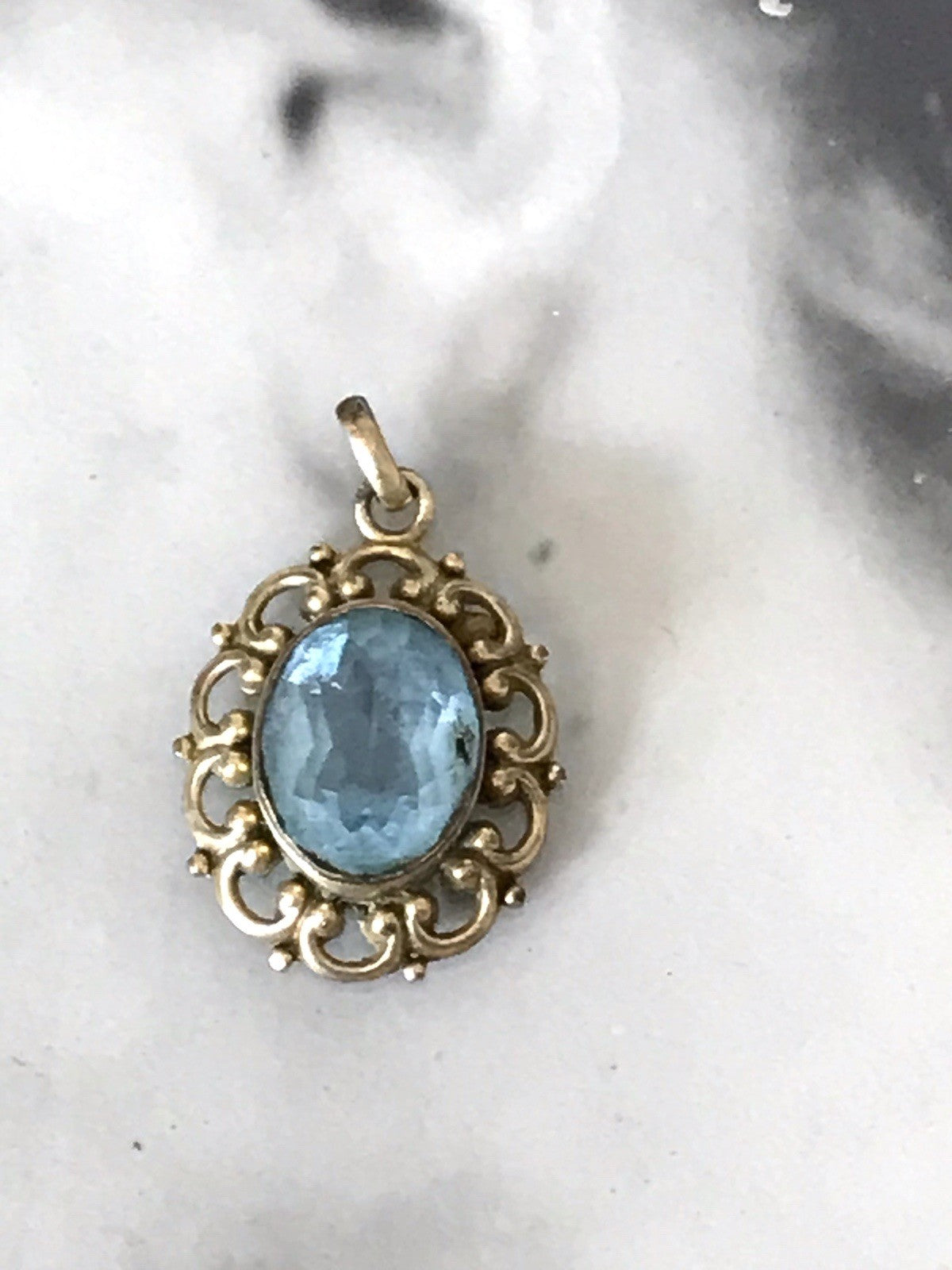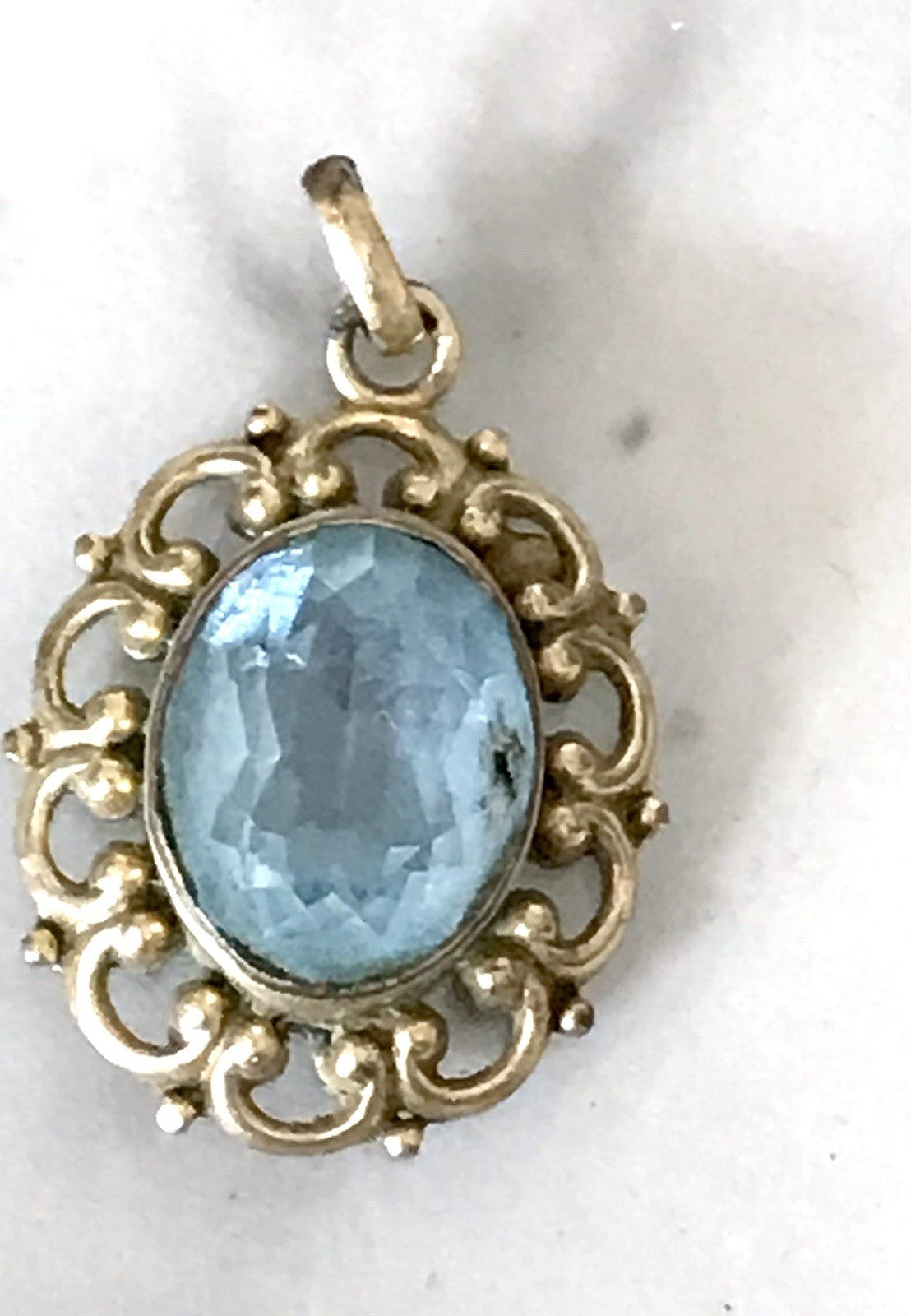 Alt Vintage Edel Anhänger vergoldet SUPER Design blauer Stein