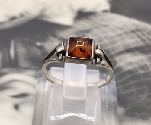 Alt Vintage Edel Bernstein DAMEN RING Silber 925 Super Design Gr.56 AD