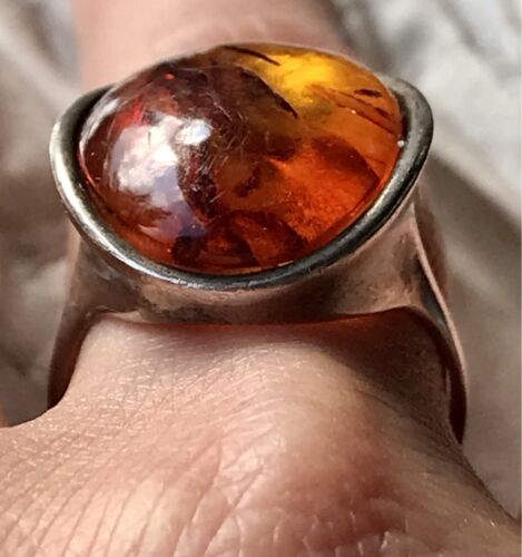 Alt Vintage Edel Bernstein DAMEN RING Silber 925 Super Design Gr.57 schön