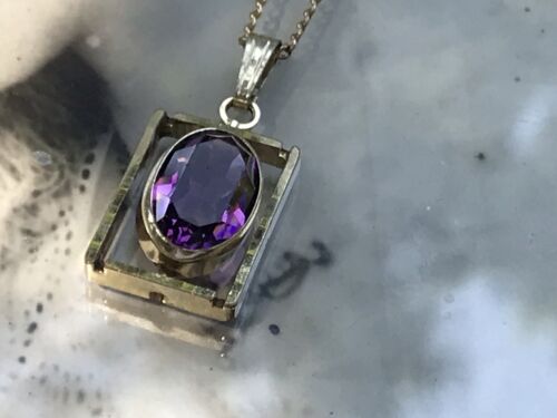 Kommodengriff präsentiert einen wundervollen edlen zauberhaften alten zeitlos schönen und recht gut erhaltenen gepflegten Designer Kettenanhänger Anhänger aus Amerikaner Doublé mit wunderschönem lila super geschliffenen Stein von es gibt zwar eine Punze hinter „Amerikaner“, aber ich kann sie leider nicht lesen