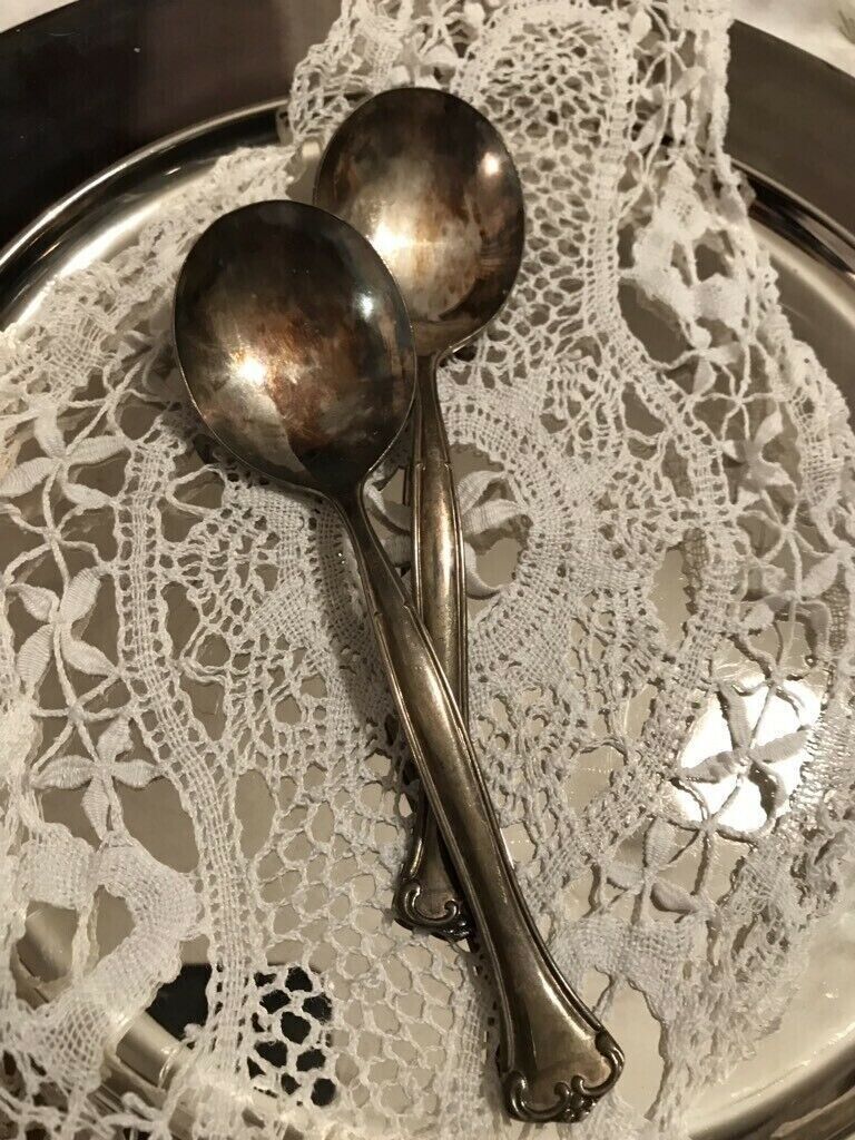 Alt Vintage elegant 2 Sahnelöffel Löffel versilbert