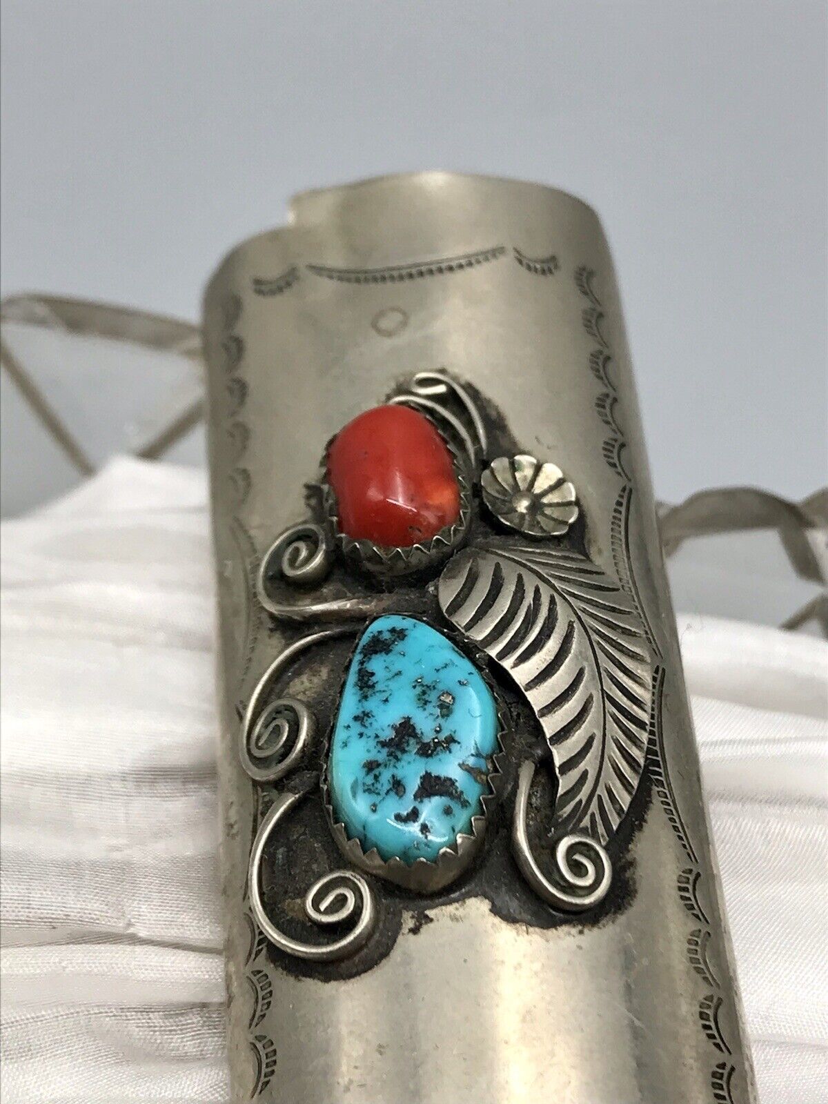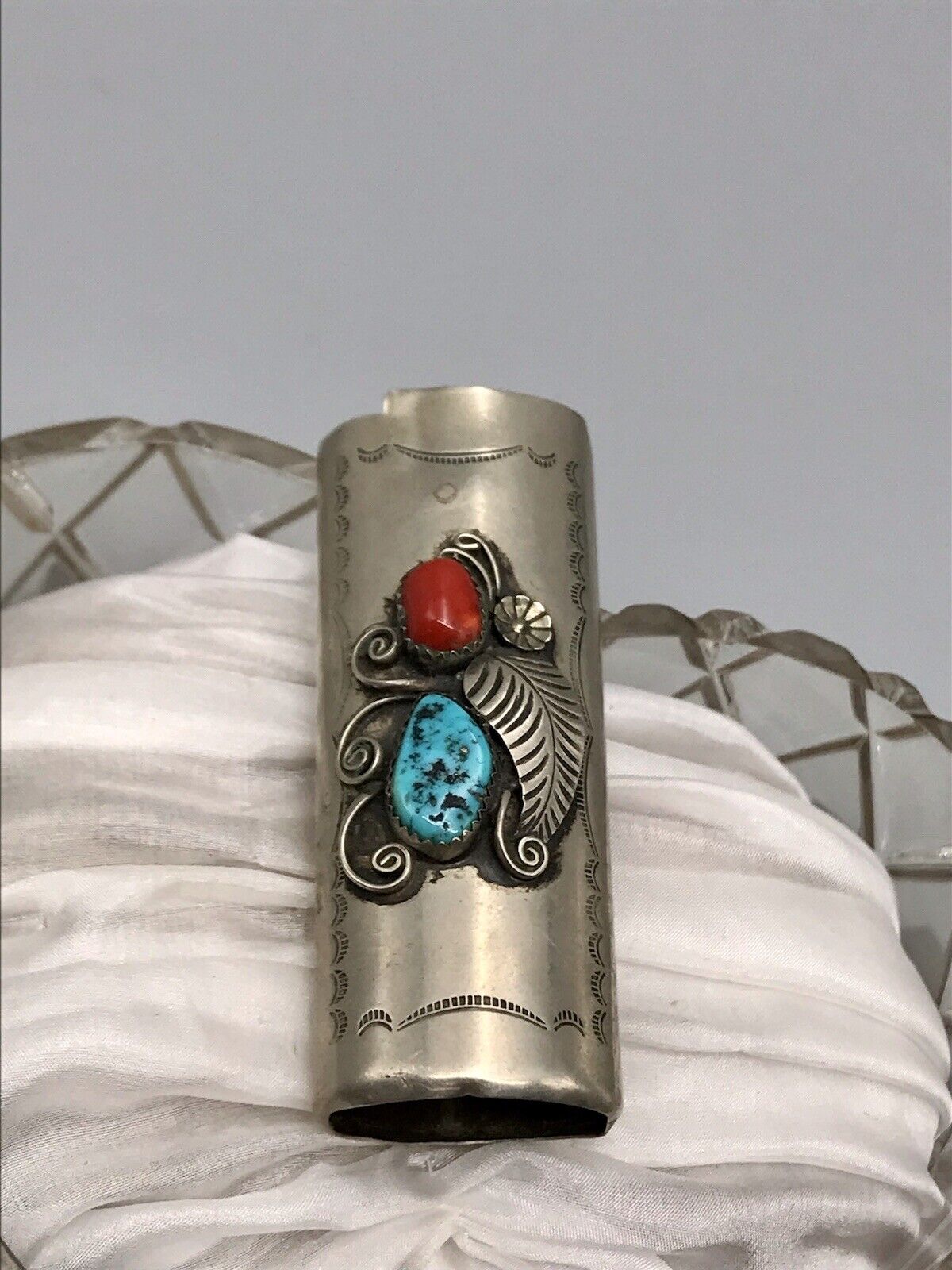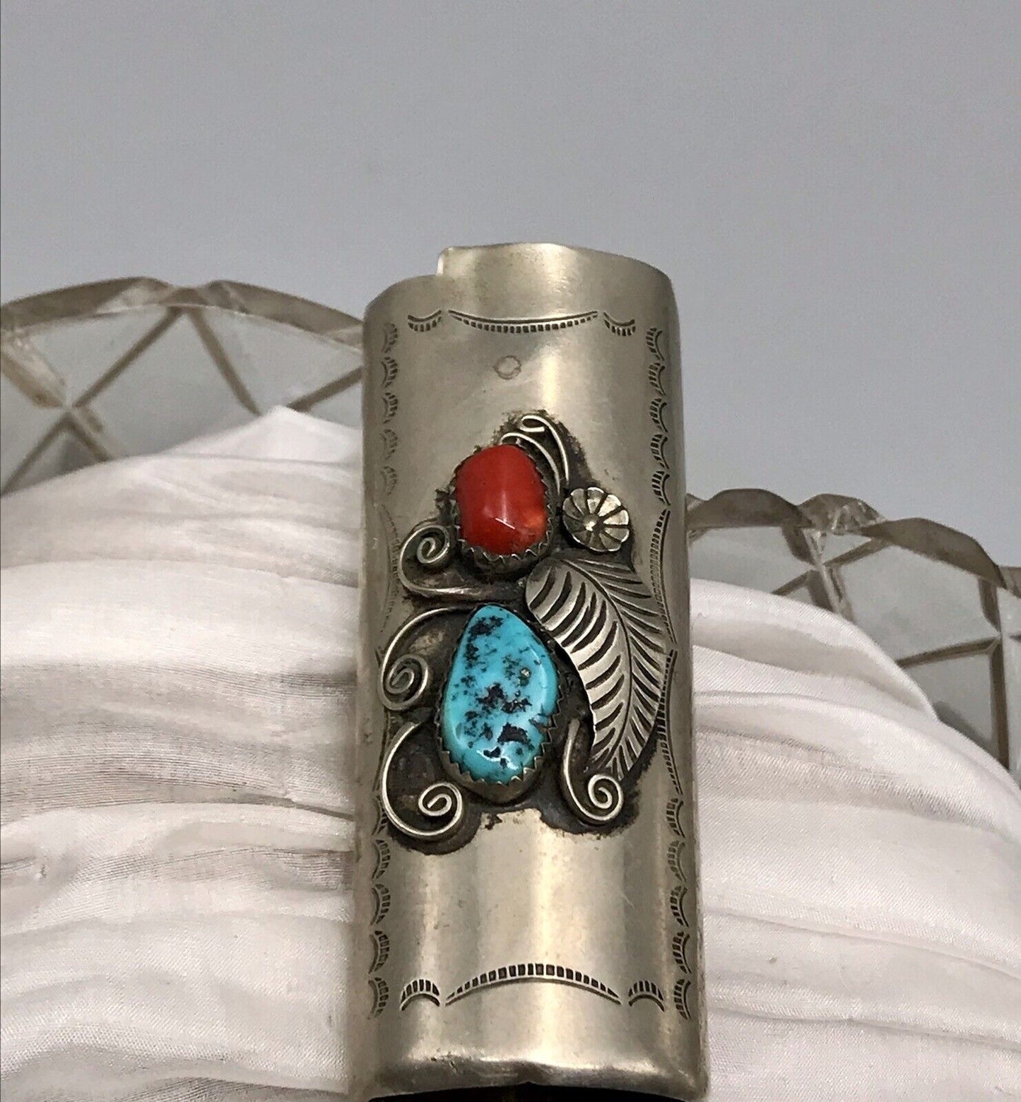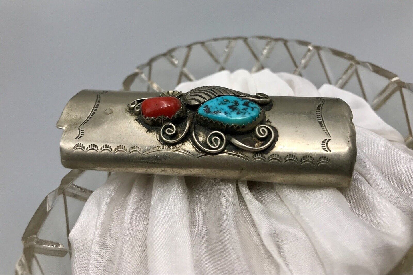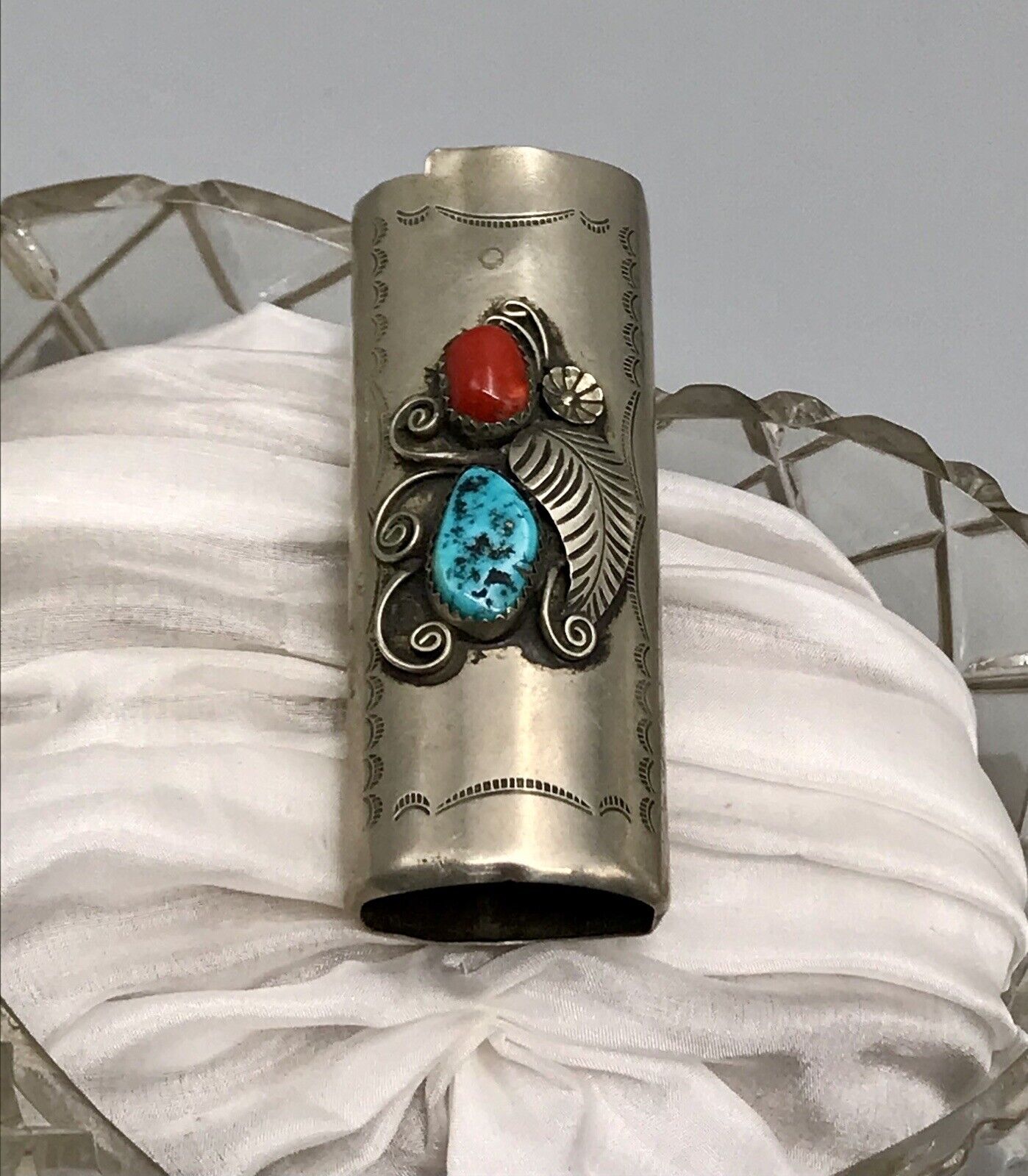 Alt Vintage Ethno Navajo Feuerzeughülle für BIC versilbert Steine Türkis usw.