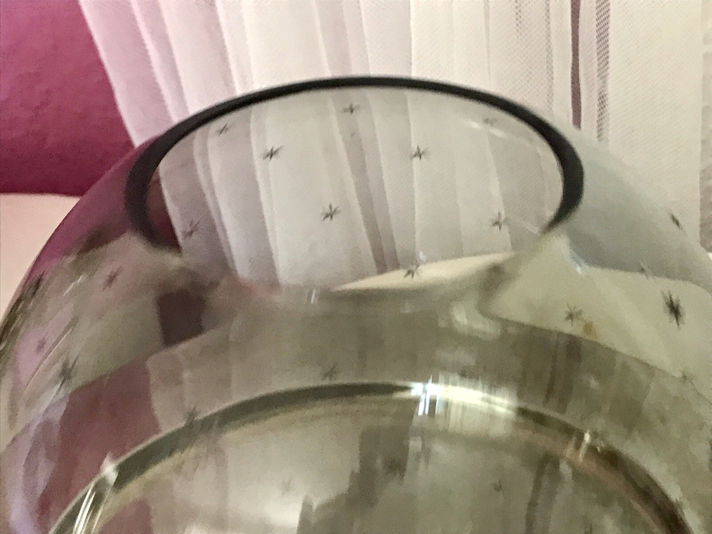 Kommodengriff präsentiert eine wunderschöne sehr attraktive kugelige Vase Glasvase aus schönem Rauchglas mit kleinen Sternchen eingraviert