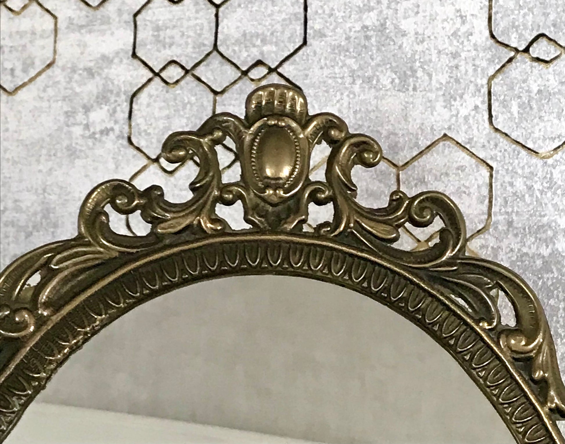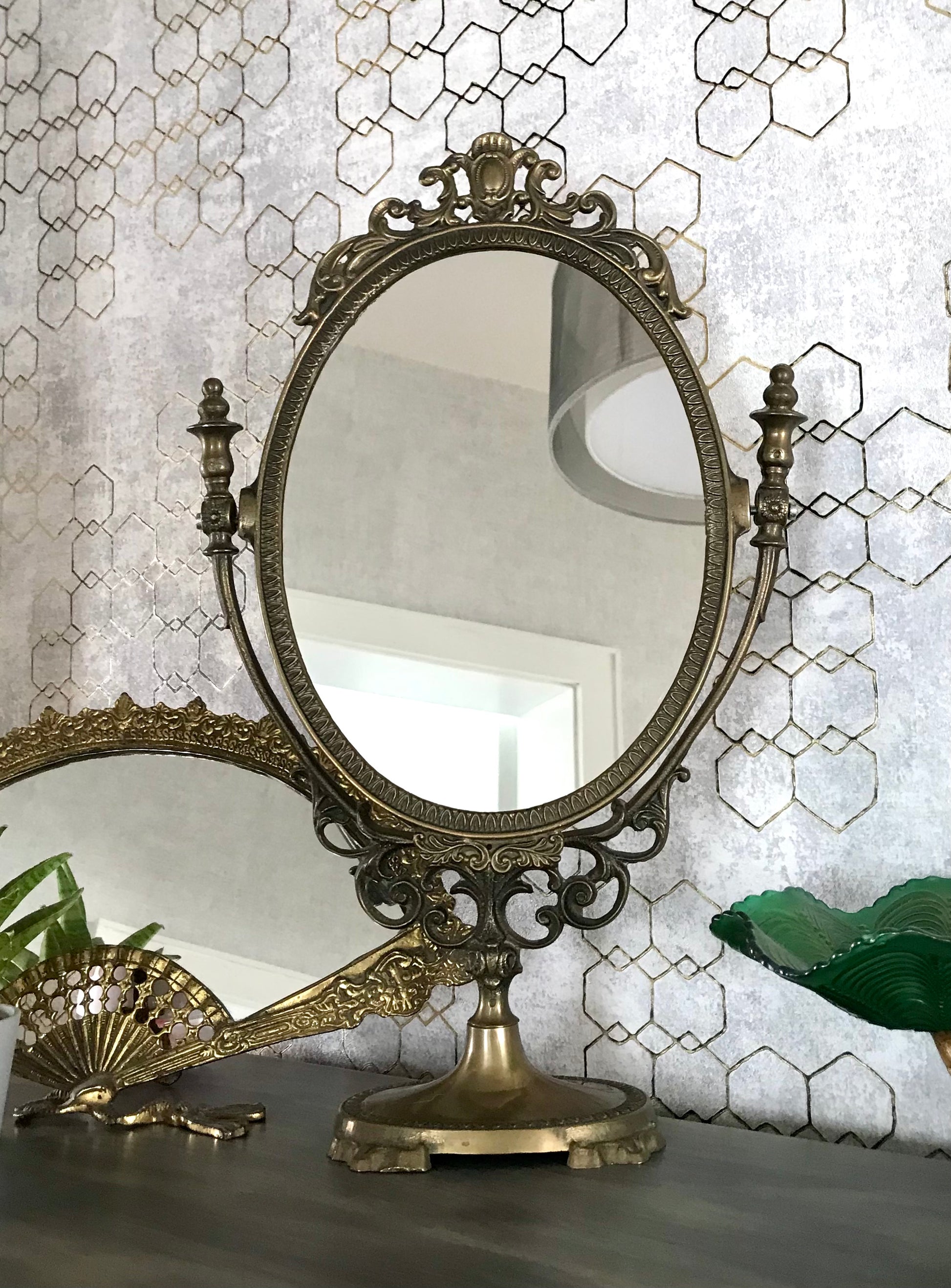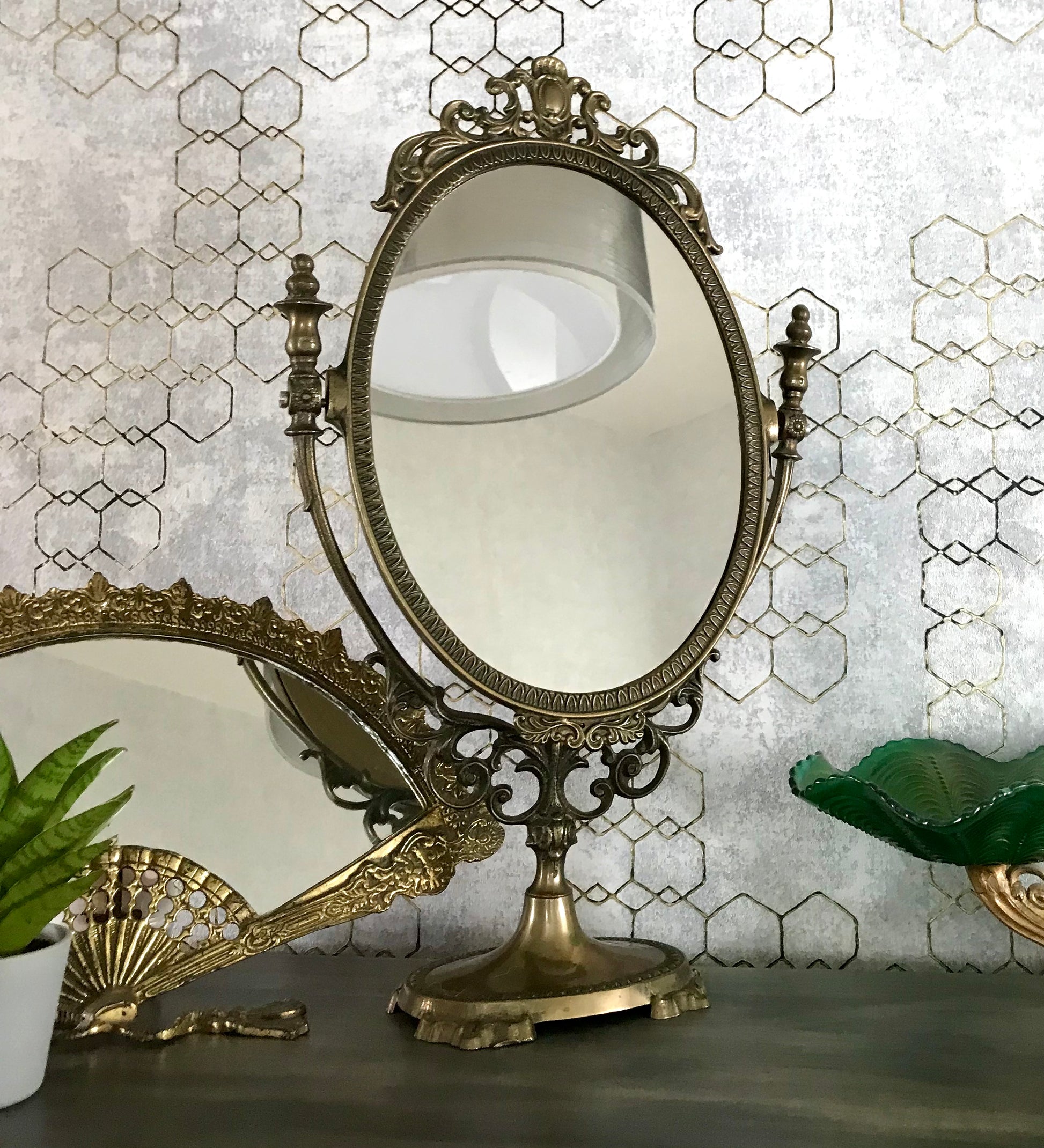 gearbeiteten Vintage Tisch-Spiegel Kosmetikspiegel Schwenkspiegel aus Messing