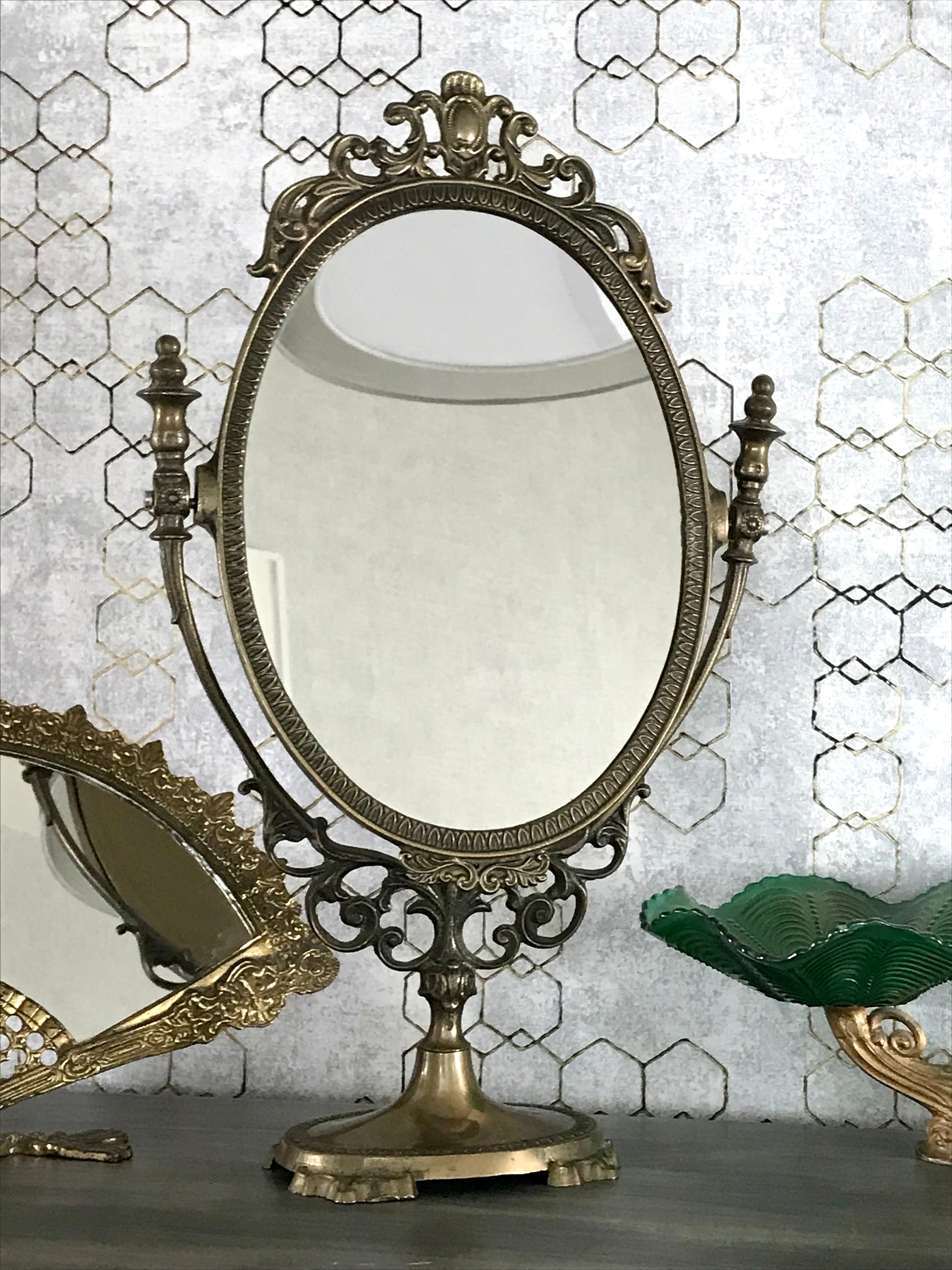 Alt Vintage Tischspiegel Spiegel schwenkbar Messing