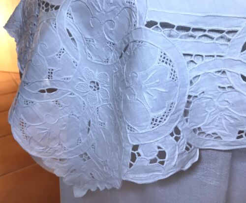 Älter Tischdecke 83 x 82 Stickerei weiß Baumwolle Spitze elegant floral üppig