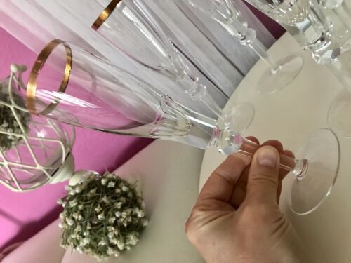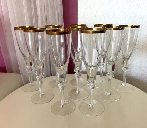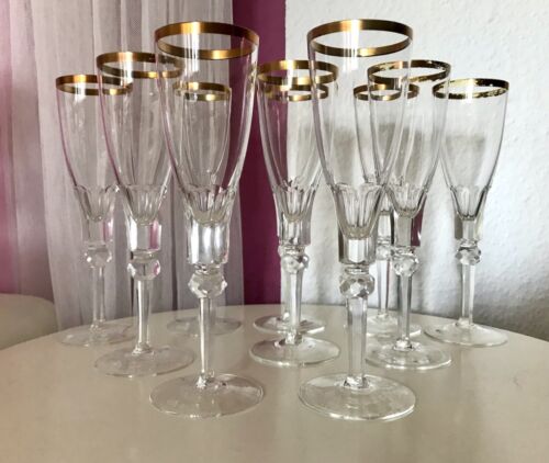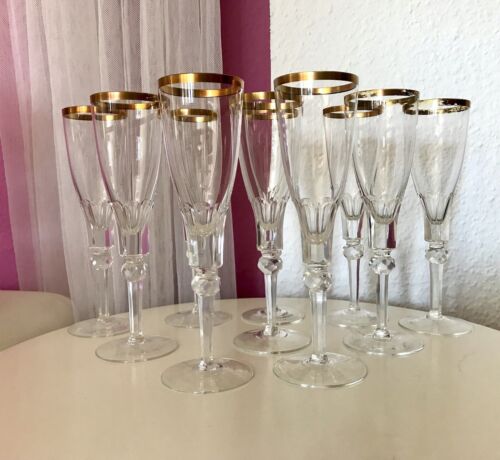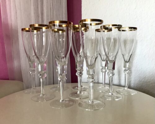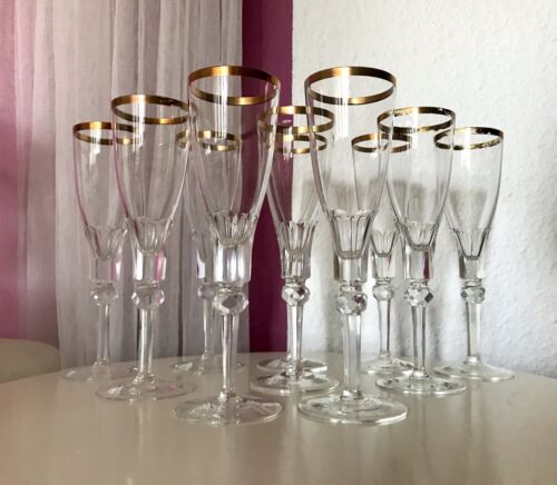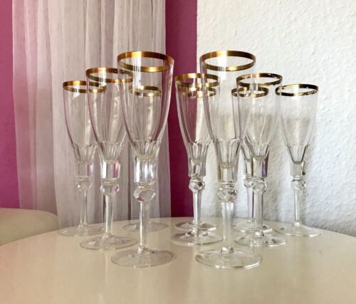 Antik 10 EDEL Sektflöten Sektgläser Glas Kristallglas EINMALIG! Selten Goldrand
