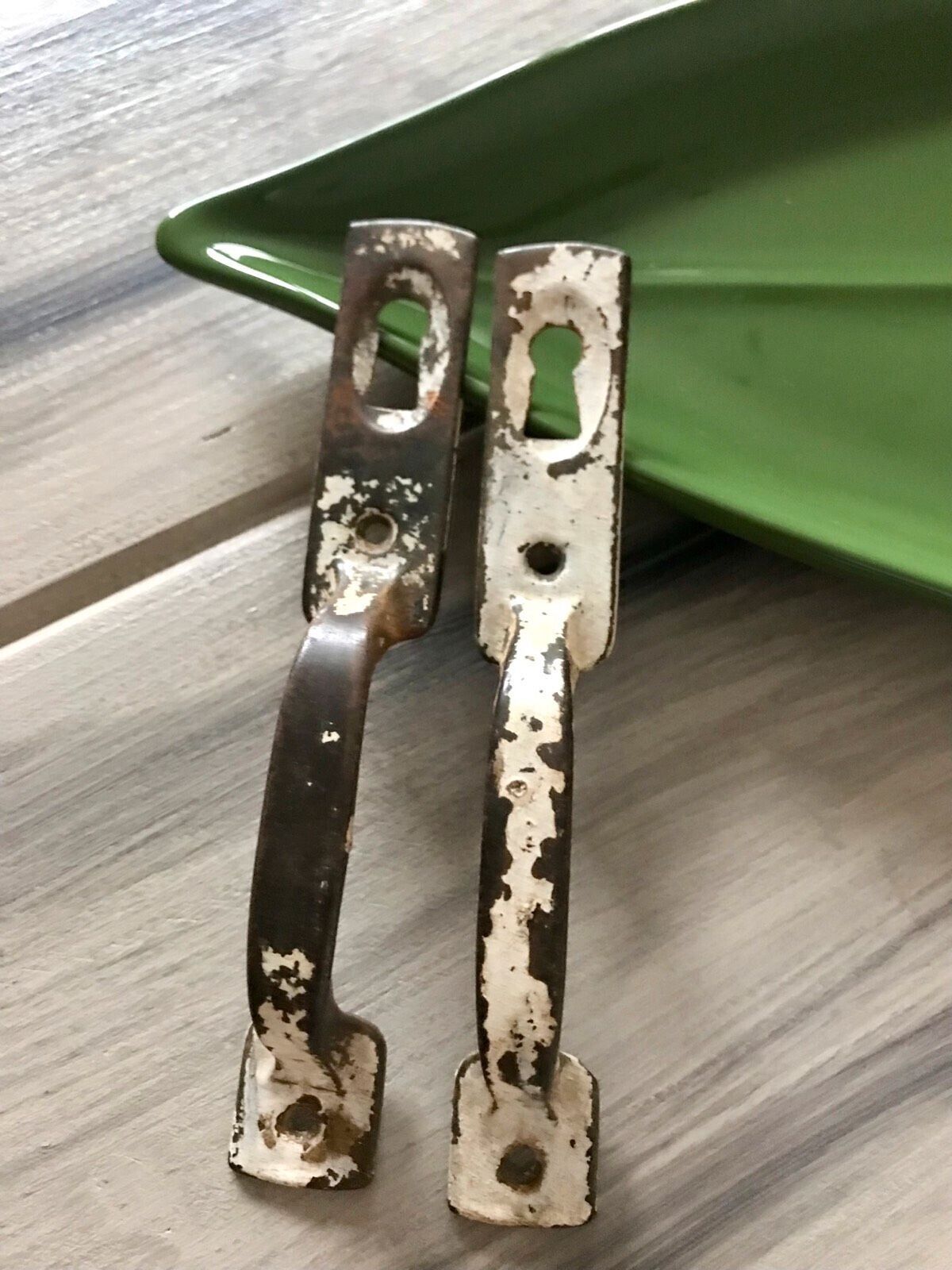 Kommodengriff präsentiert 2 antike original aus der Zeit um 1920 Schubladengriffe Kommodengriffe mit integriertem Schlüsselloch