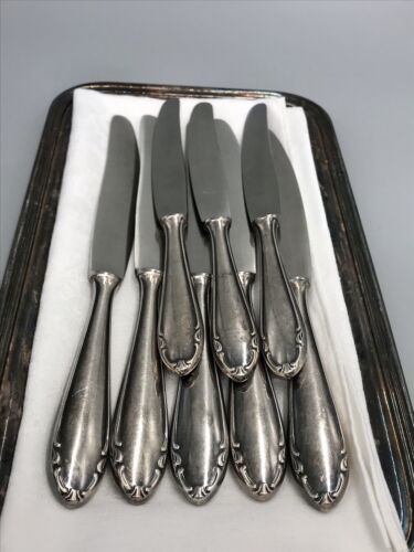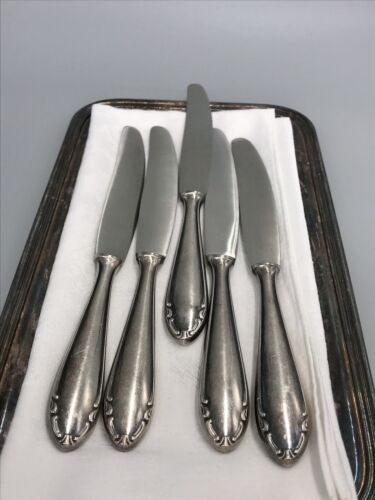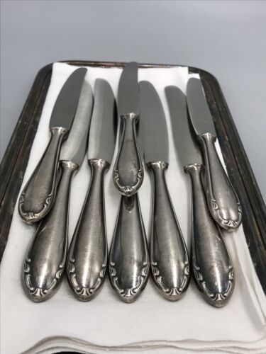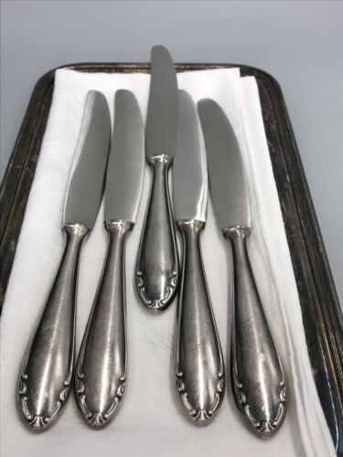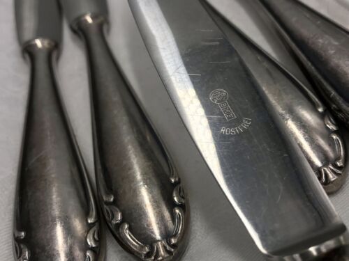 Antik 5x & 3x Art Déco versilbert Tafelmesser Menümesser Besteck BMF