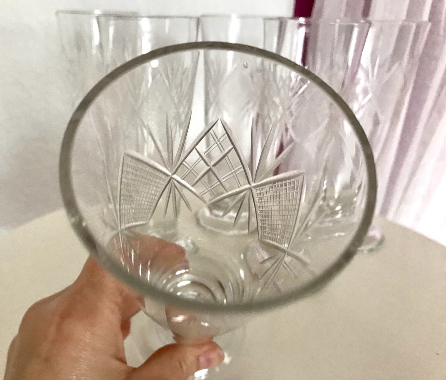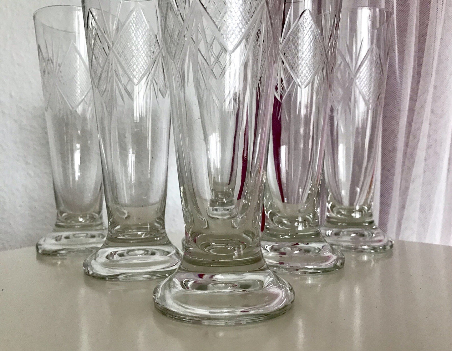 Antik 6x Fußbecher Fußrand-Becher mundgebl. Pokalgläser Kristallglas? Schliff