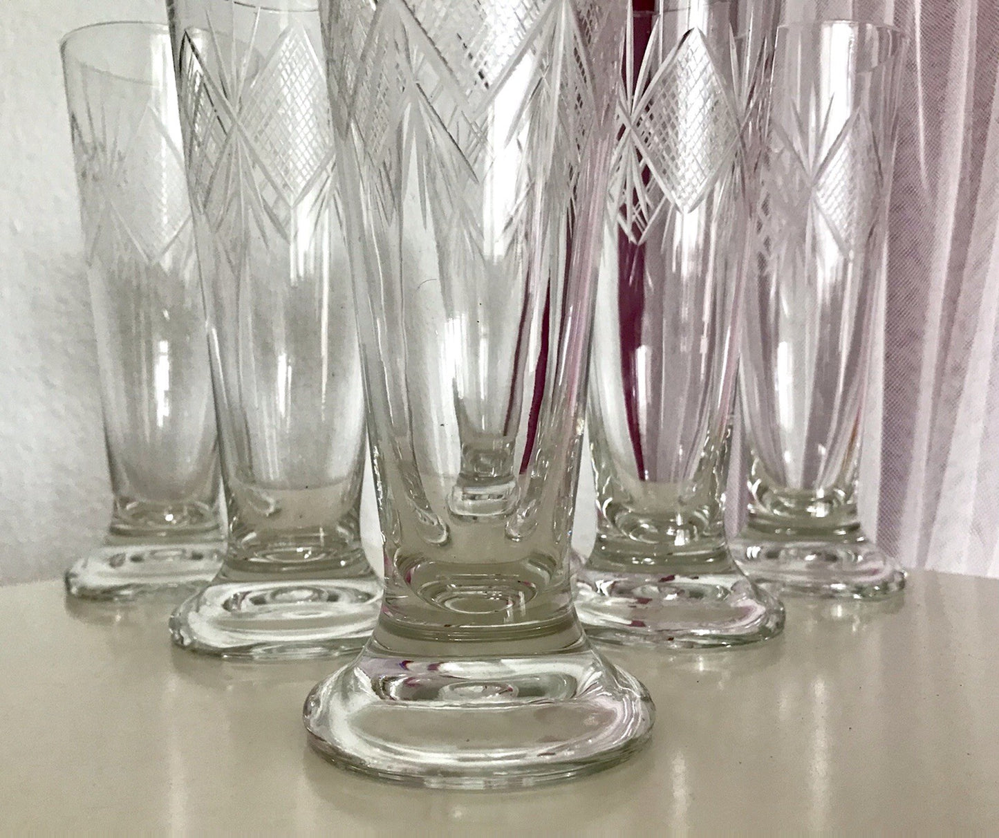 Kommodengriff präsentiert eine Rarität: 6 antike mundgeblasene wunderschöne Fußbecher Fußrand-Becher Pokalgläser Becher Gläser Biergläser aus farblosem edel geschliffenen Glas vermutlich Kristallglas um 1900-20