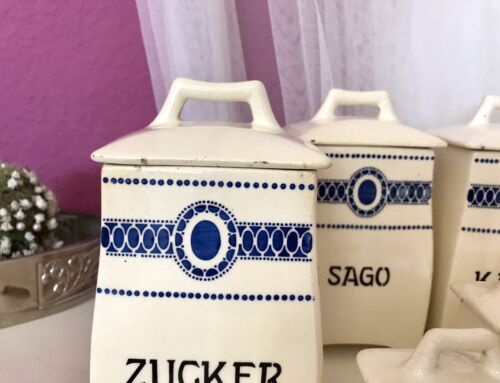 Antik 7 Jugendstil Keramik Vorratsgefäße Gries Kaffee Gefäße Vorratsdosen Asta
