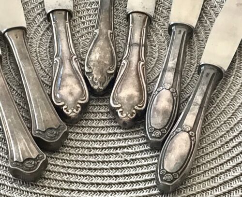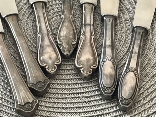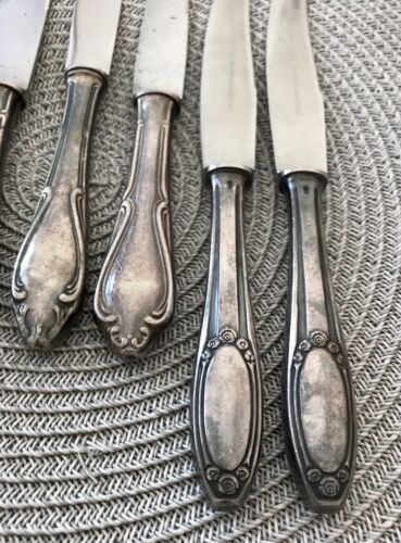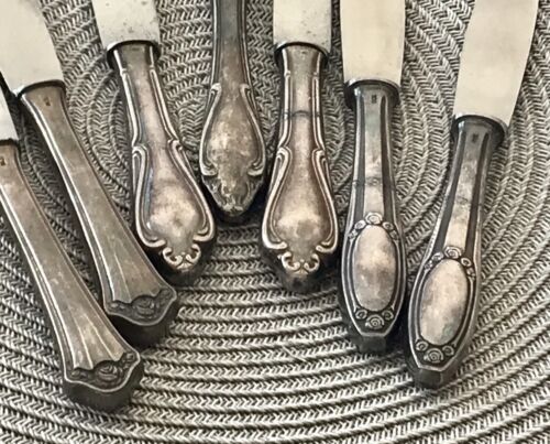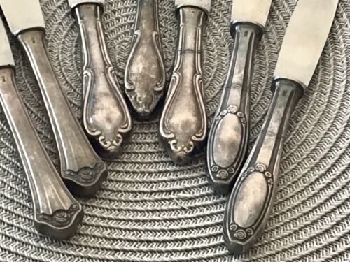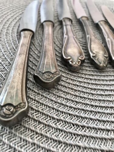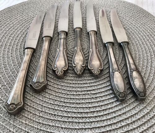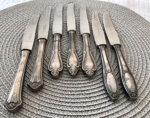 Antik 7x Art Déco versilbert Tafelmesser Menümesser Messer Besteck Konvolut