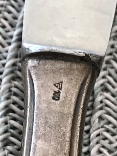 Kommodengriff präsentiert ein Konvolut bon 7 versilberten schönen Besteckteilen Tafelmesser? Menümesser Messer