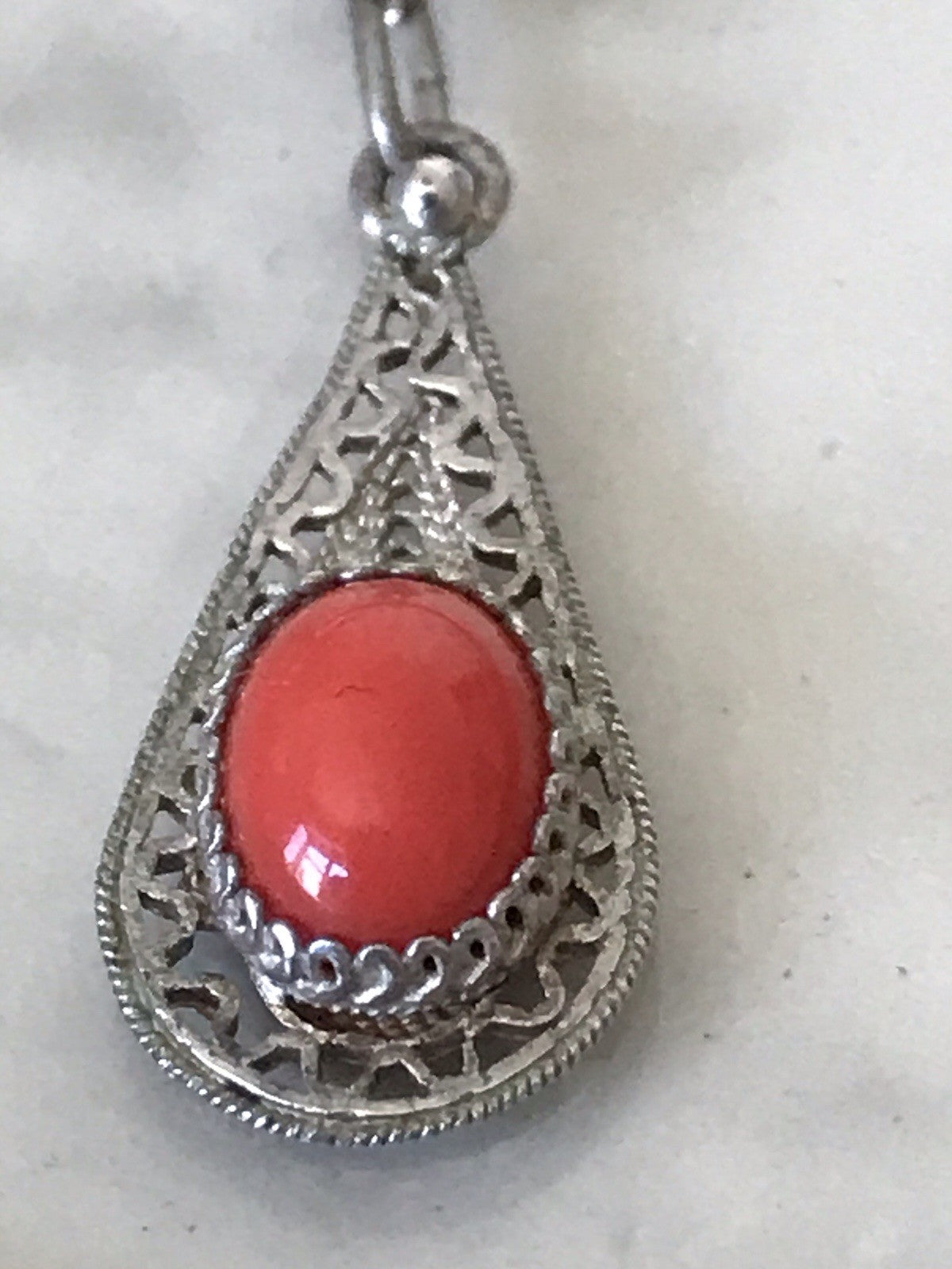 Antik alt 835 Silber filigrane Halskette Koralle? roter Stein