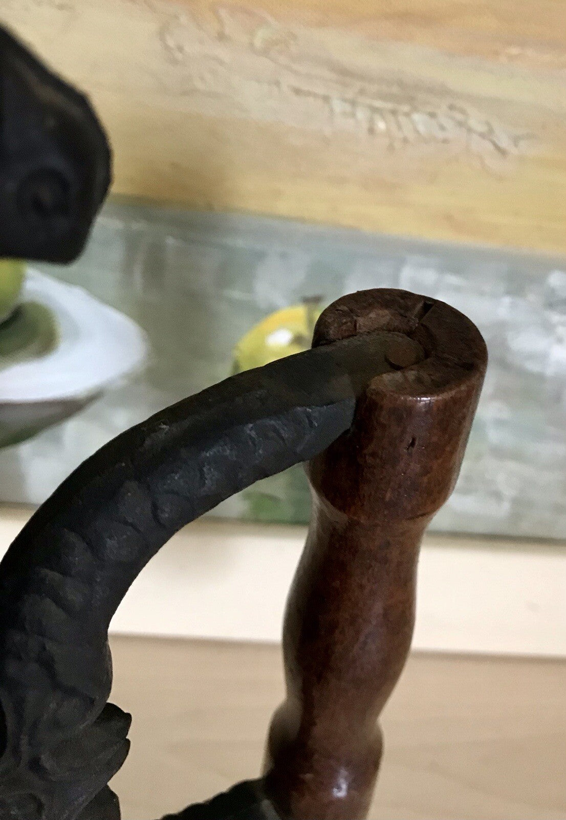 Kommodengriff präsentiert ein dekoratives vermutlich antikes altes Bügeleisen Kohlebügeleisen