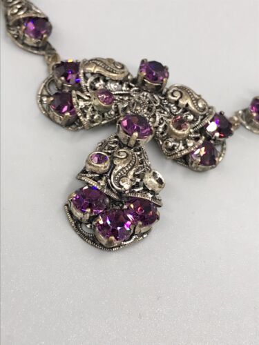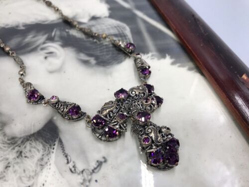 Antik alt Collier Halskette lila Steine Miriam Haskell? nicht signiert