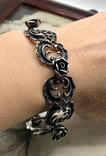 Antik Alt Edel DAMEN Armband Durchbruchmuster Silber SUPER TeKa Pforzheim Rosen