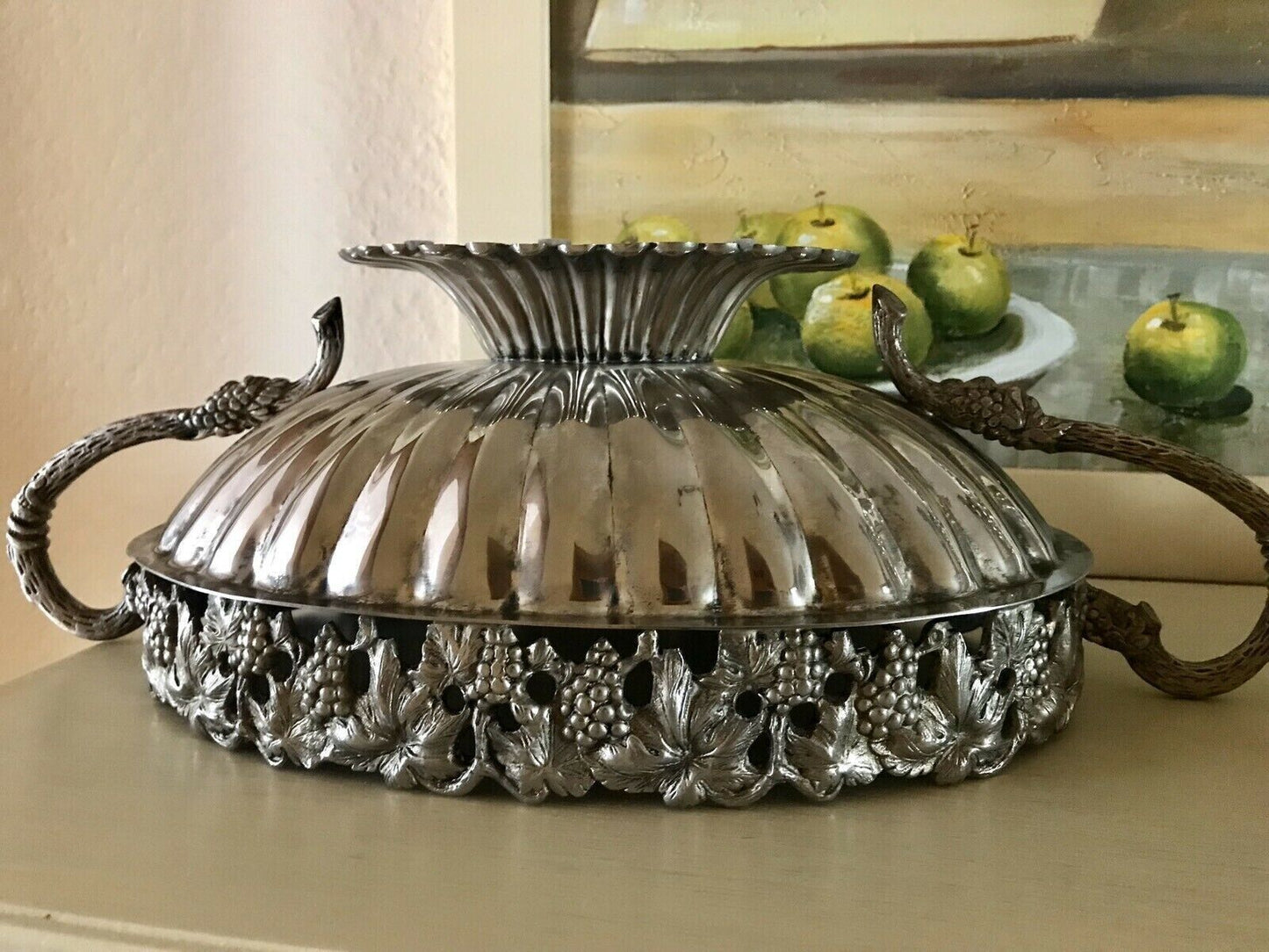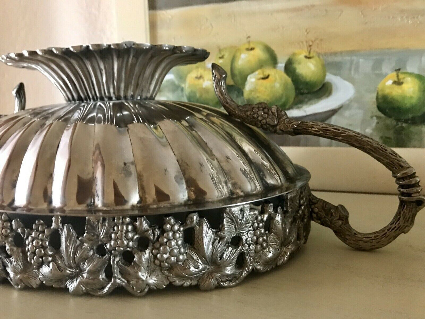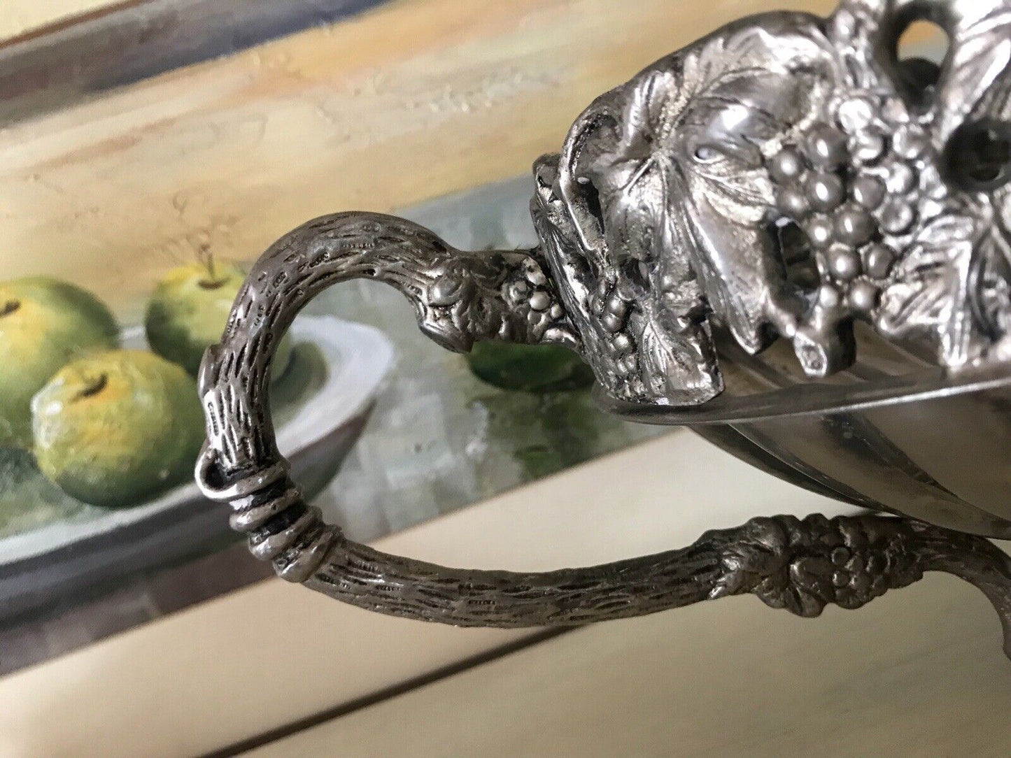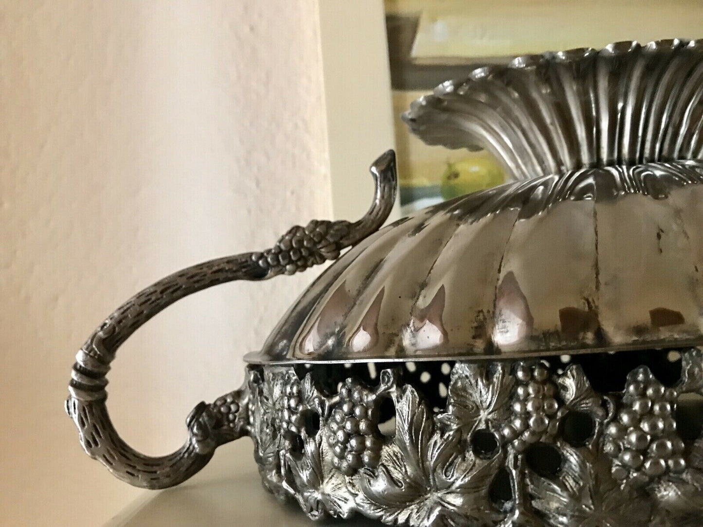 Ganz wundervoll in Jugendstil/Art Déco gearbeitet mit floral stilisiertem Durchbruchmuster-Rand mit Weinblätter-, Weintrauben- und Weinranken-Relief.