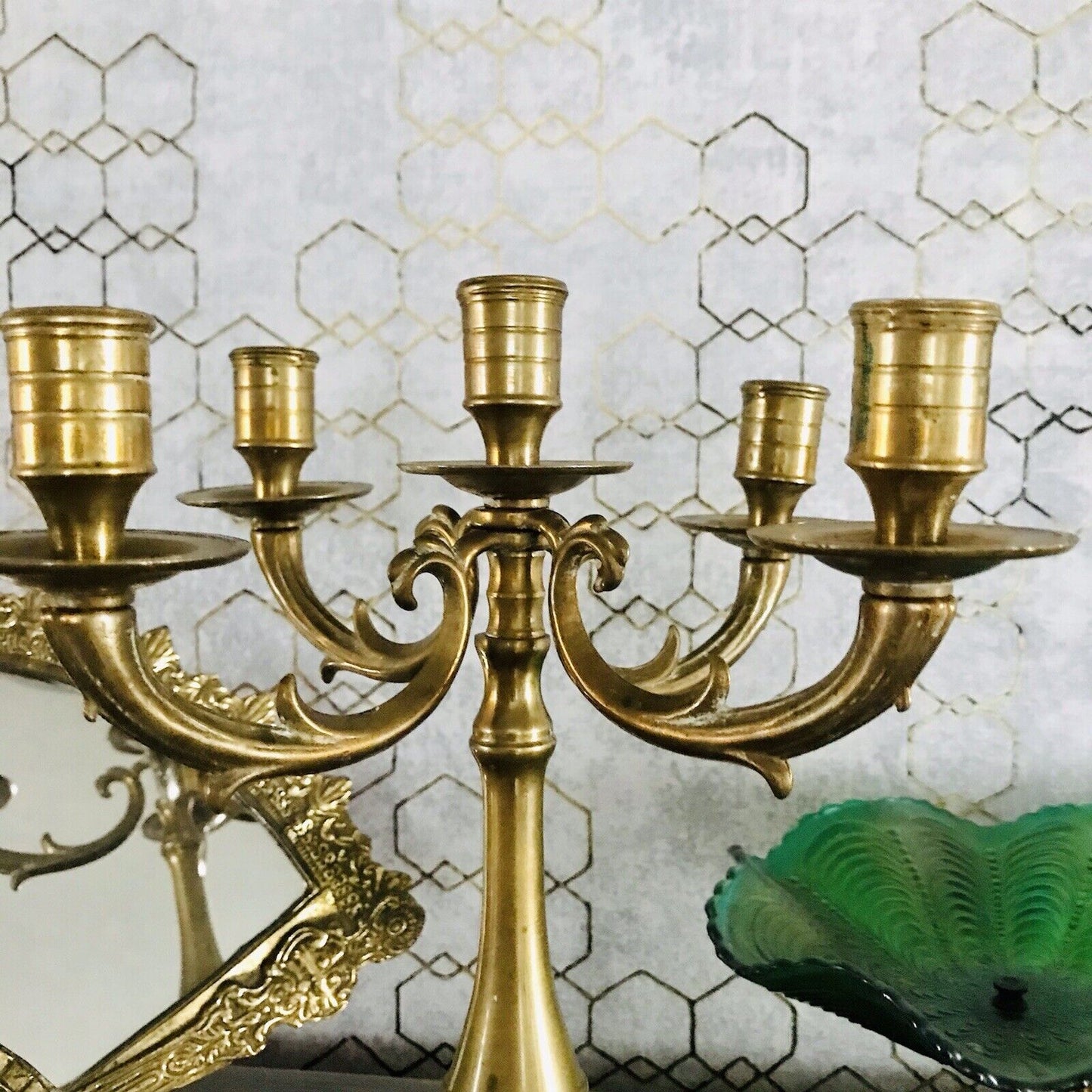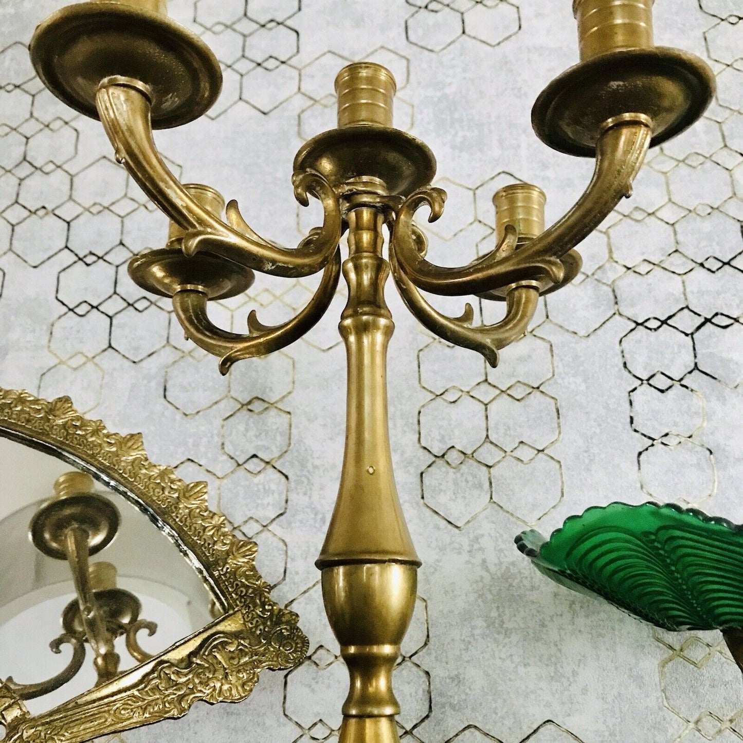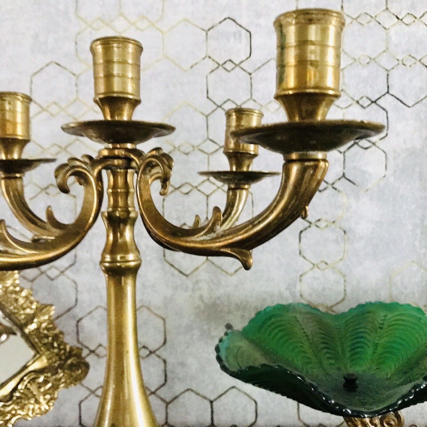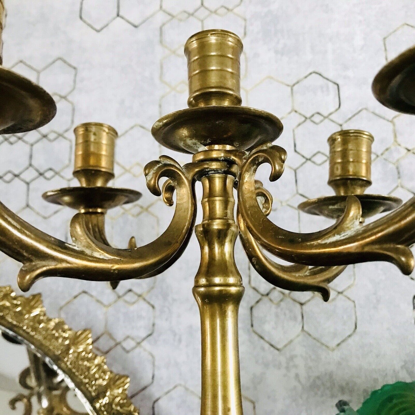 Achtung! Ich habe noch 2 weitere identische bzw. ähnliche Kerzenleuchter separat eingestellt, sie unterscheiden sich lediglich unwesentlich in Maßen und Patina.