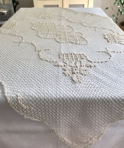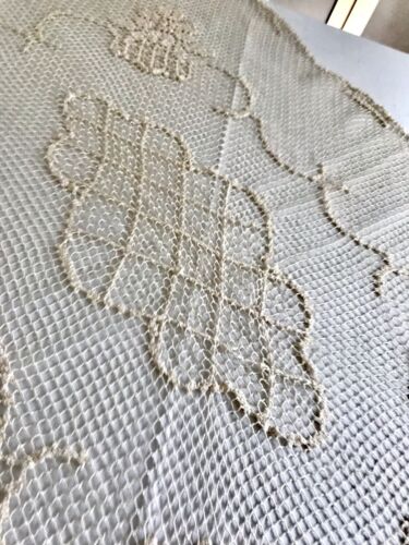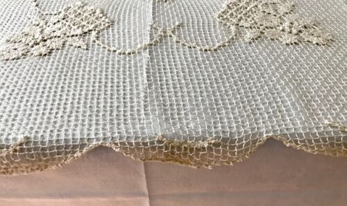 Antik alt Spitze hell beige Tischdecke 138 cm x 108 cm Baumwolle Filetspitze