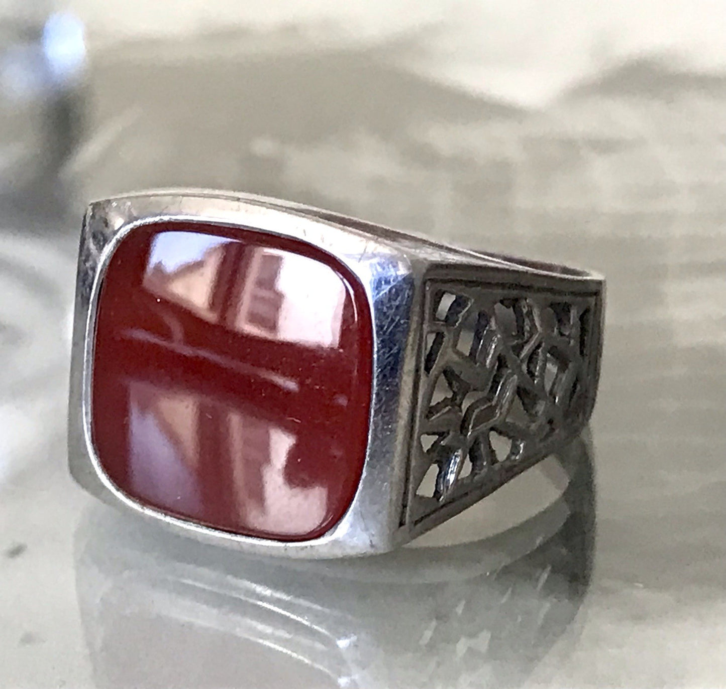 Antik alt Vintage Art Déco Herren RING Siegelring Karneol 835 Silber Gr.63