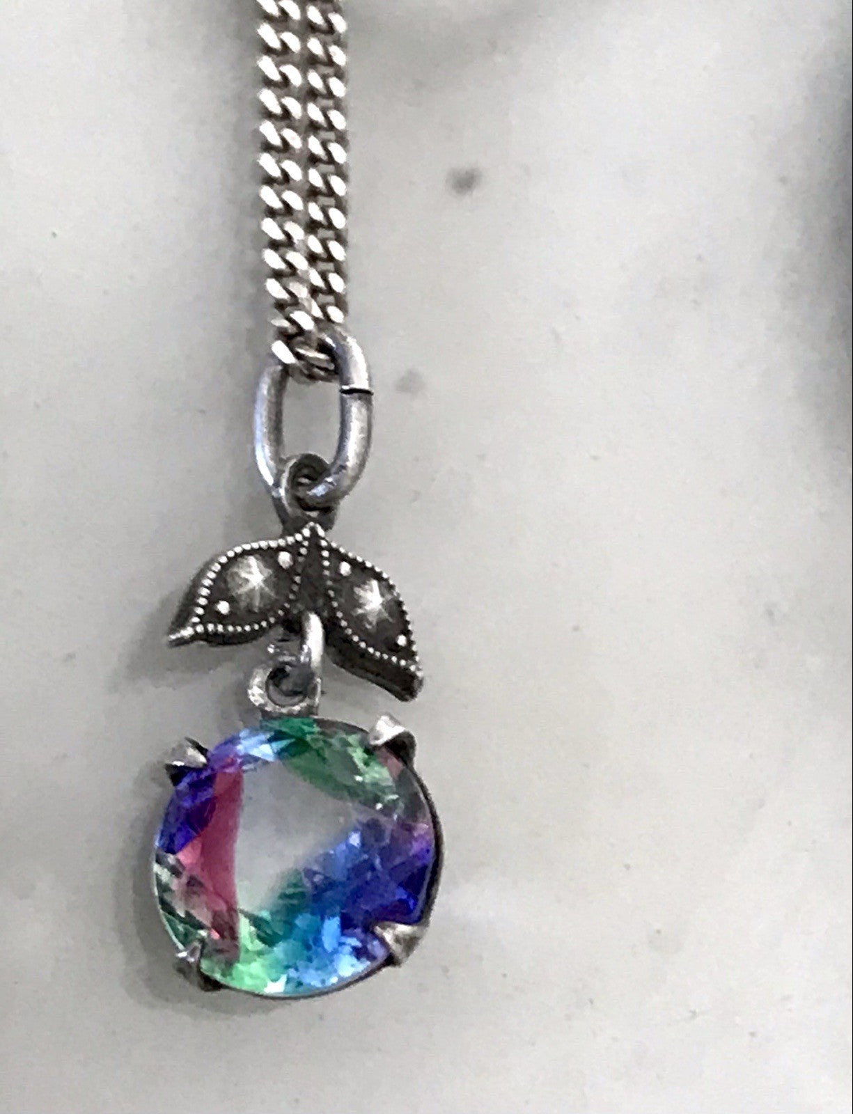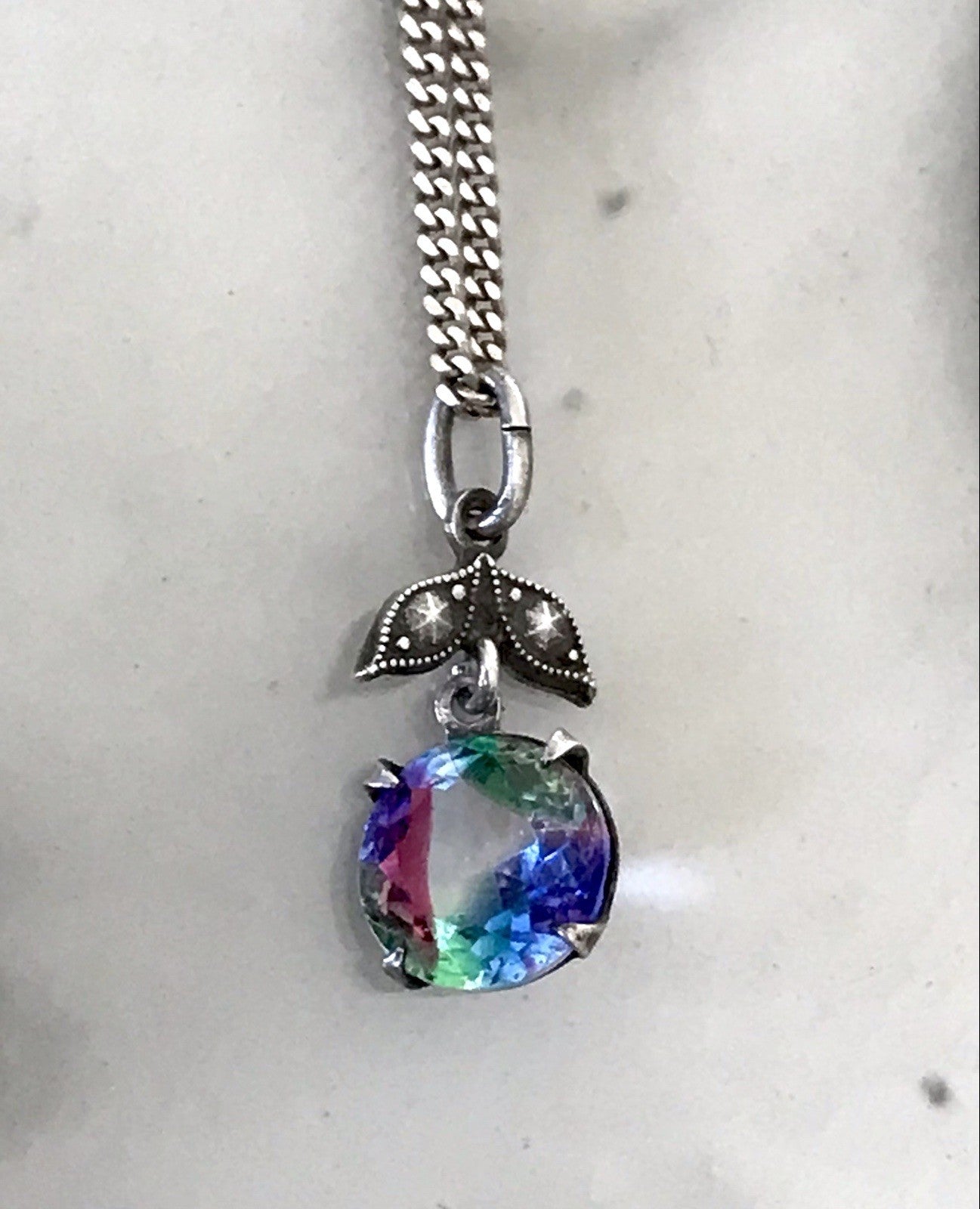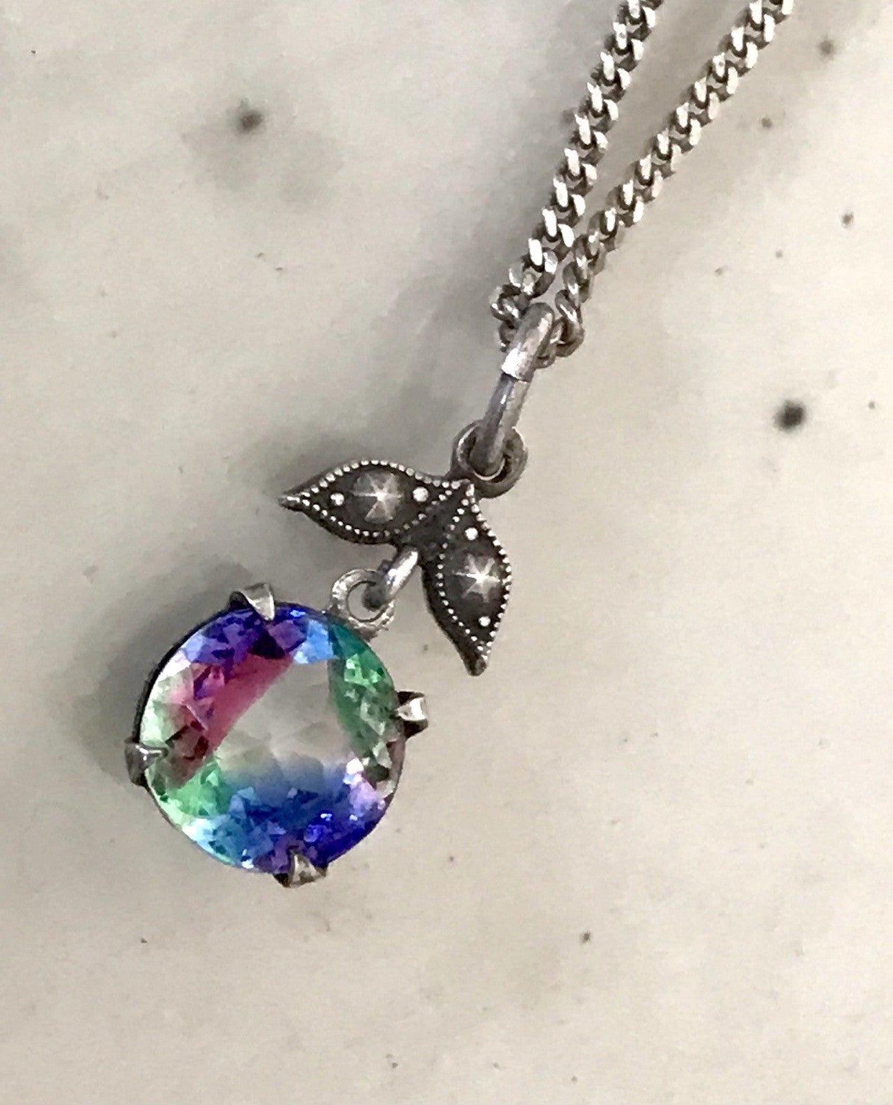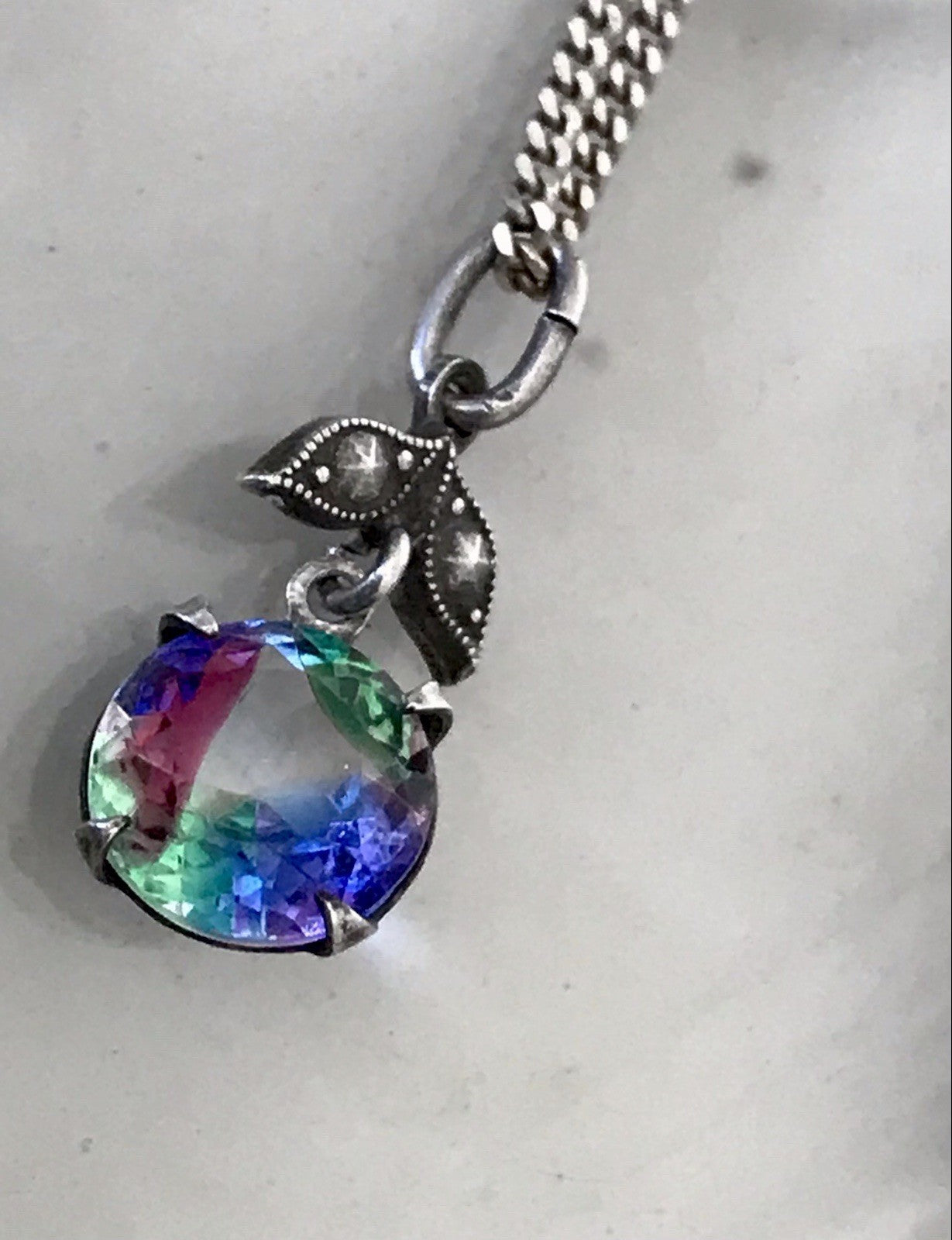 Kommodengriff präsentiert eine wunderschöne antike Halskette Kette mit wunderschönem Anhänger buntem runden geschliffenen fantastischen Rheinkiesel