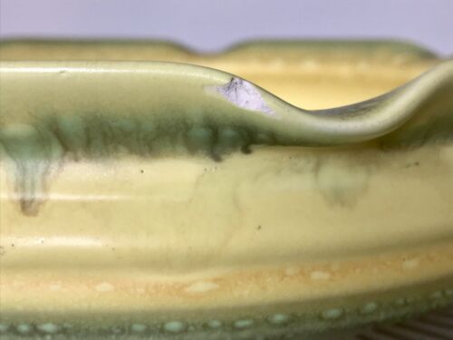 Mit mehrpassig gekniffenem Rand und schöner Glasurin typischer für diese Künstlerin Optik mit zentrischen Mustern.