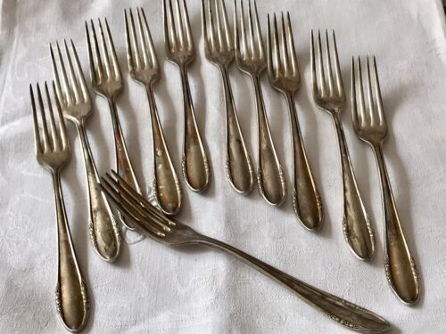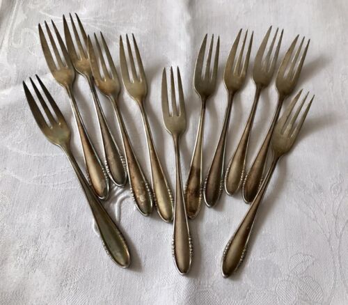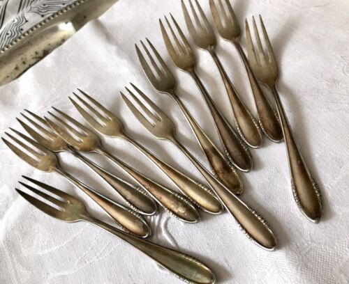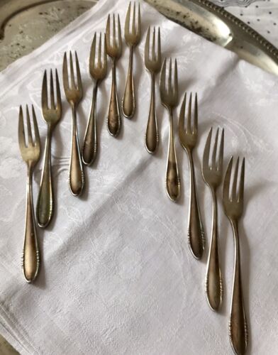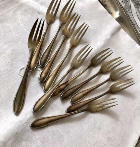 Antik Art Déco BMF 90 versilbert Kaffee Besteck 11x Kuchengabel Gabel