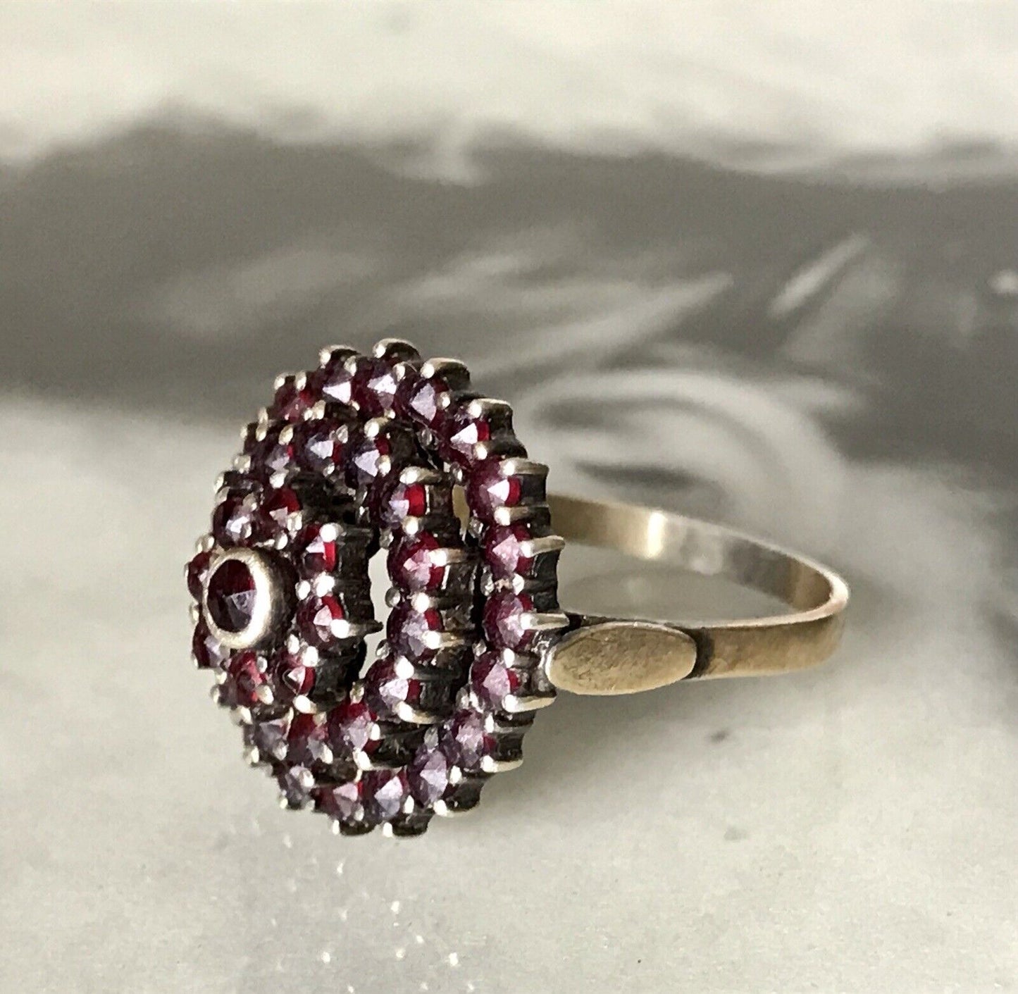 Antik Art Déco Damen Ring Granatschmuck 900 Silber Gr.59 Granatsteine vergoldet