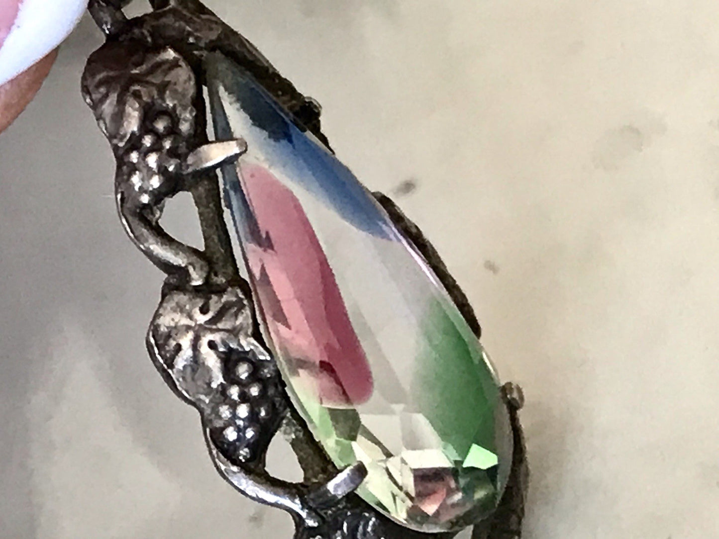 Kommodengriff präsentiert einen wundervollen edlen zauberhaften antiken Art Déco Kettenanhänger Anhänger aus 835er Silber und mit schönem Rheinkiesel