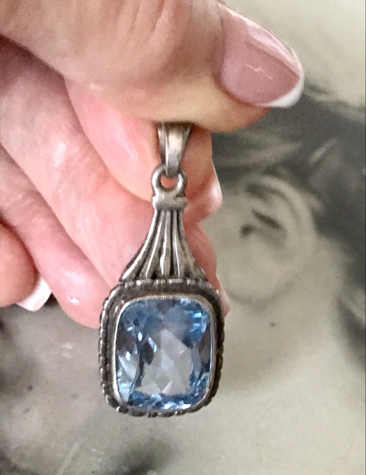 Antik Art Déco Edel Anhänger Silber SUPER Design blauer Stein
