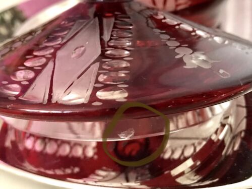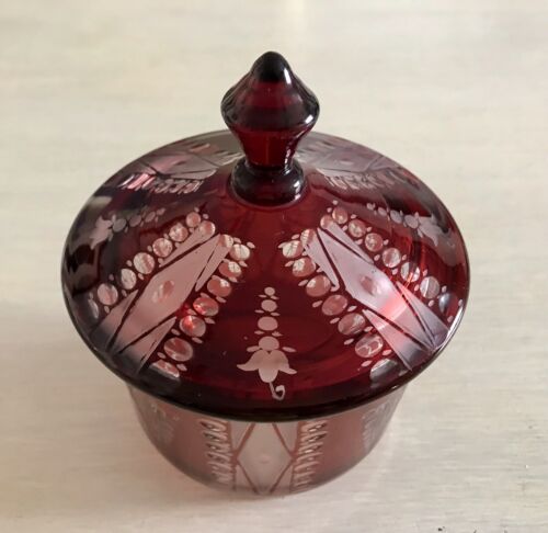 Antik Art Déco EDEL Bonboniere Glas Dose Deckeldose Rubin rot Böhmisch Schliff