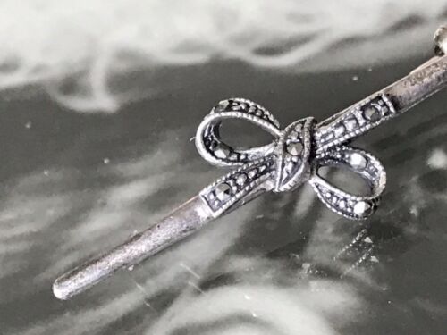 Antik Art Déco Edel Brosche Silber 925 Schleife Markasite