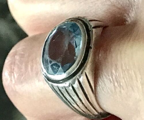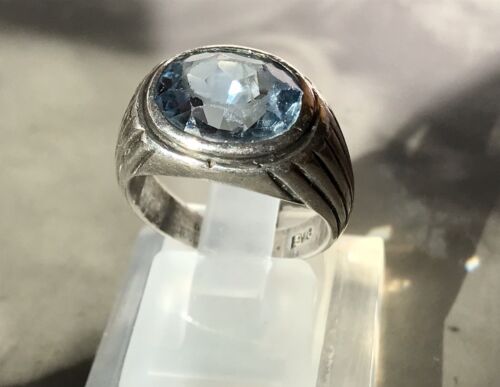 Antik Art Déco Edel DAMEN RING Silber 835 Super Design blauer Stein Gr.54 17,2