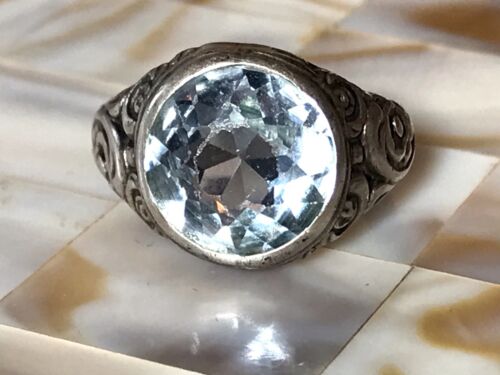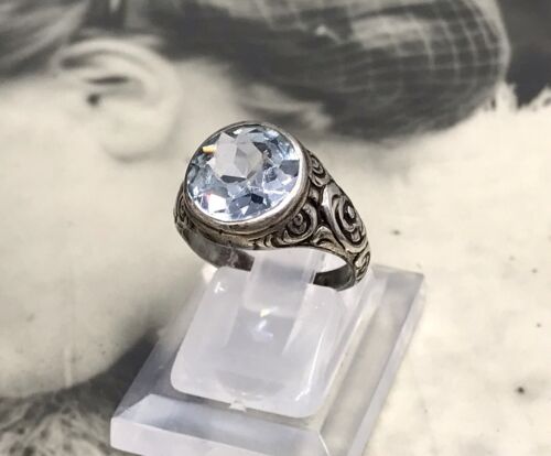 Antik Art Déco Edel DAMEN RING Silber 835 Super Design blauer Stein Gr.54 17,2