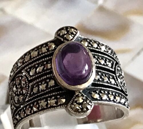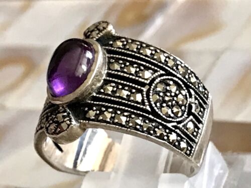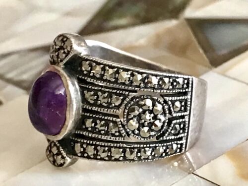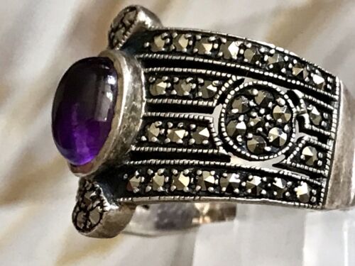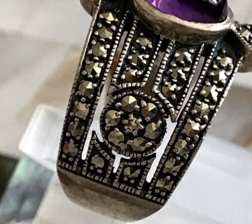 Antik Art Déco Edel DAMEN RING Silber 925 Amethyst ? Markasite Gr.56 17,8